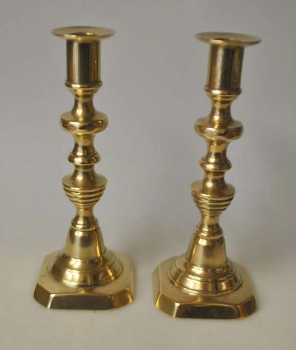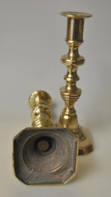 Pair of English brass candlesticks, 19th century.