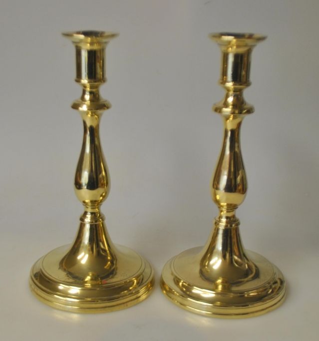 Pair of Danish antique brass candlesticks, 19th century.
