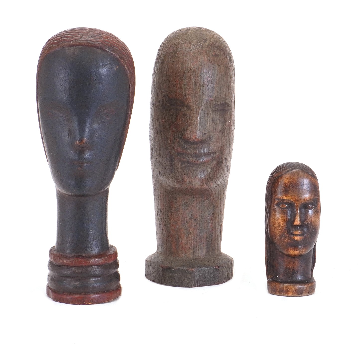 Collection of three woodcut sculptures by Otto Pedersen, Denmark