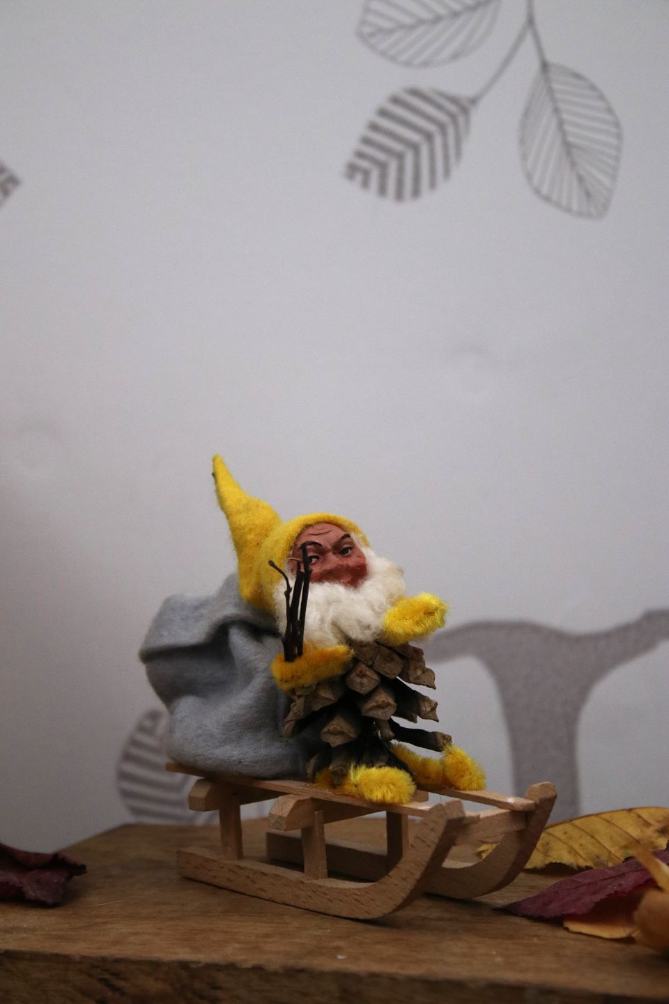 Old gnome on a wooden sled...