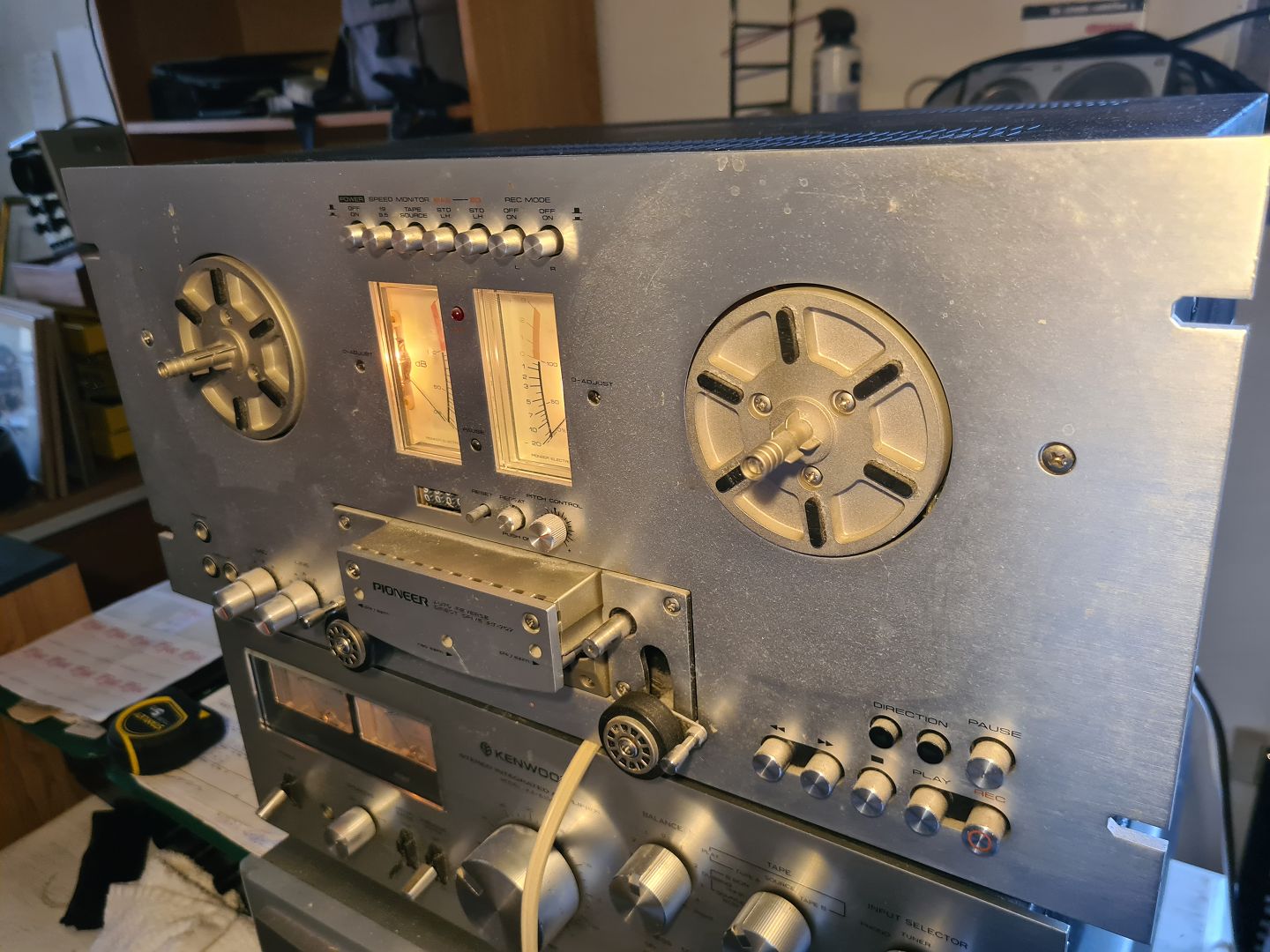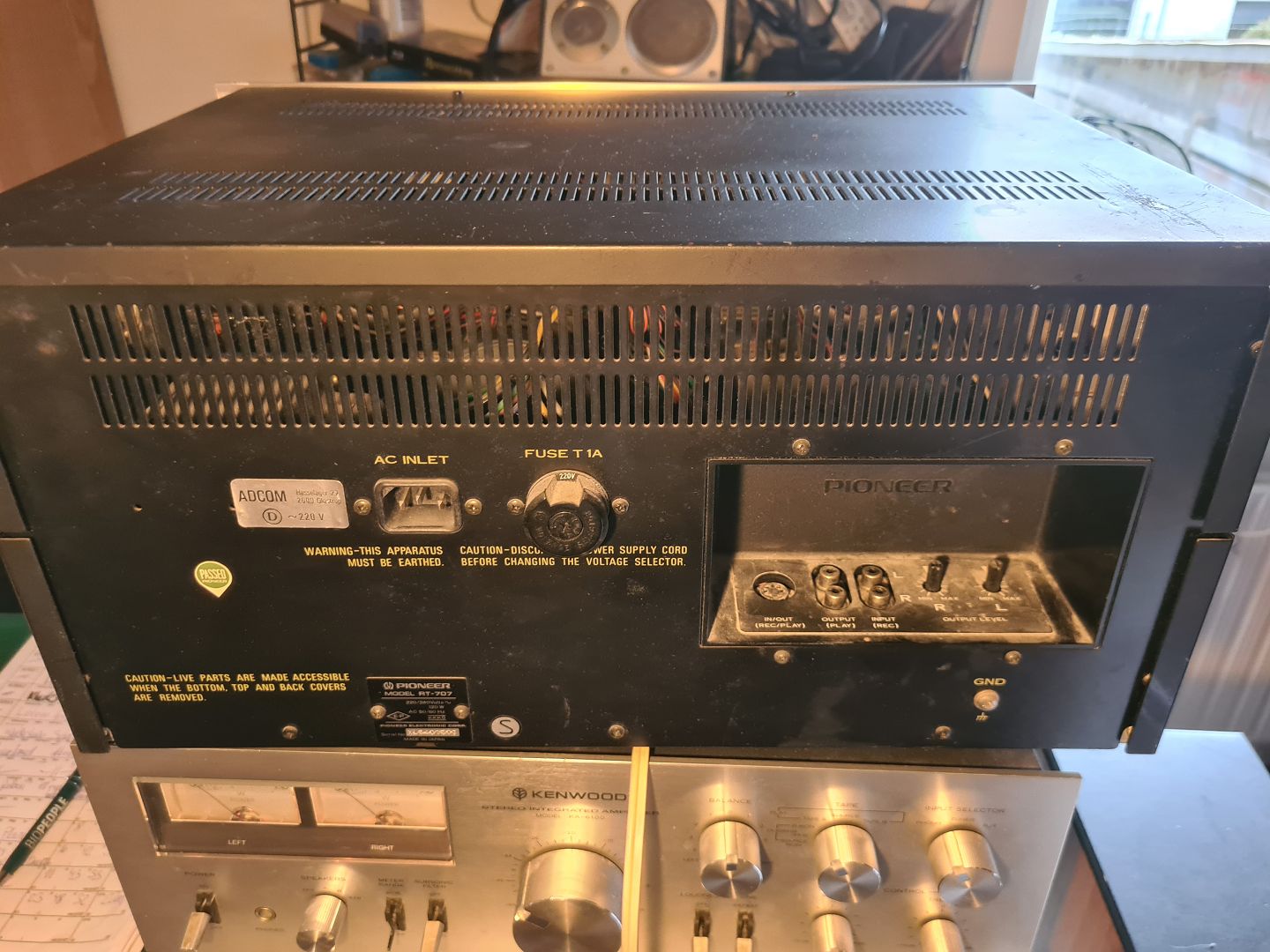 Text available in Danish: Spolebåndoptager fra Pioneer model RT-707. Sælges til reperation eller reservedele. Tænder fint op, men play funktion går i stå nærmest med det samme når der er spoler på. Kører lidt længere uden spoler på. Spolefunktionerne kører ligeledes lidt længere inden de stopper.