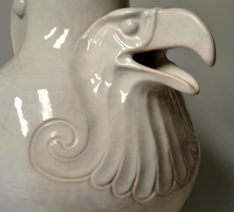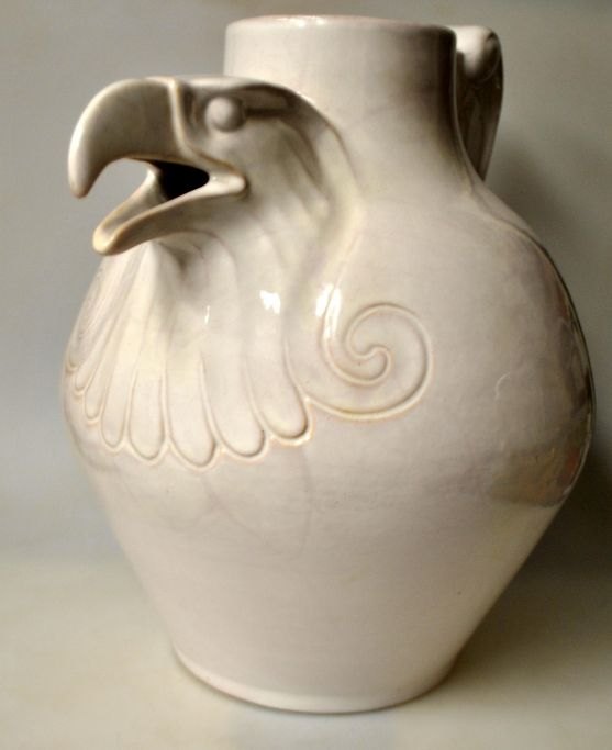 Hansen Reistrup, Karl (1863 - 1929) Denmark: Earthenware eagle jug. Manufactured by H.A Kähler, Næstved. White glazed. With specially designed handle. Signed: KHR and HAK. H.: 32.5 cm. W.: 35 cm.