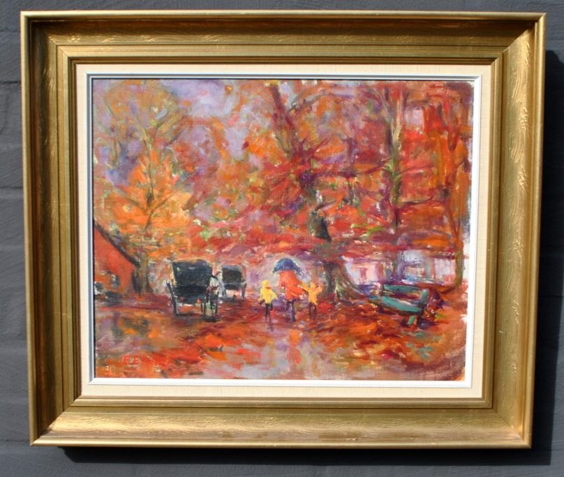 Eisner, Ib (1925 - 2003) Denmark. October rain, Dyrehaven. Oil on canvas. Signed. 40 x 50 cm. Verso marked.