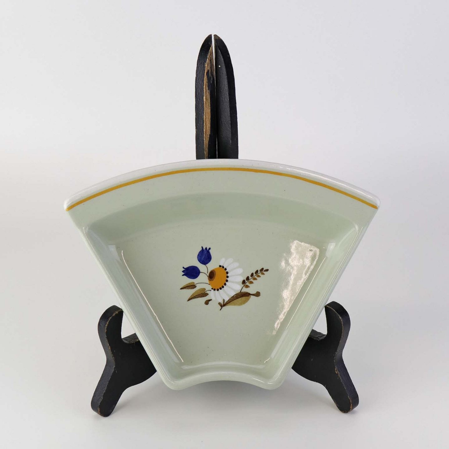 Stellet er fremstillet i perioden 1934-1963 i stelform E. Fajancestel i lys grøn farve dekoreret med forskelligfarvede blomster og gul bort.