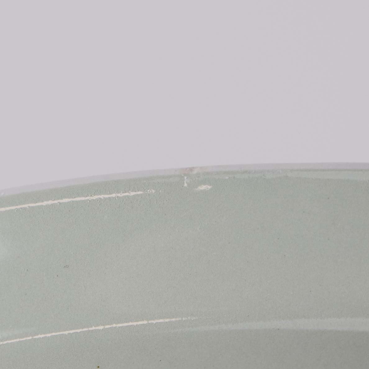 Fremstår med mindre sorte nister i glasuren samt ujærnhed ved topkanten.