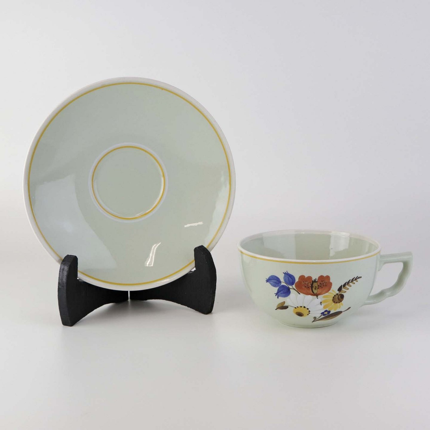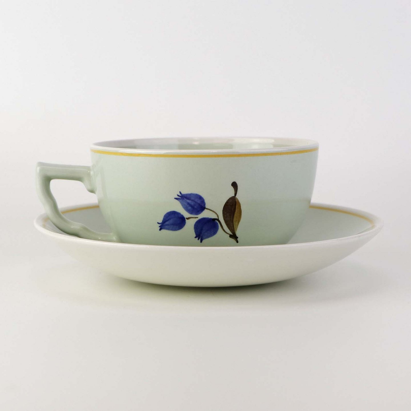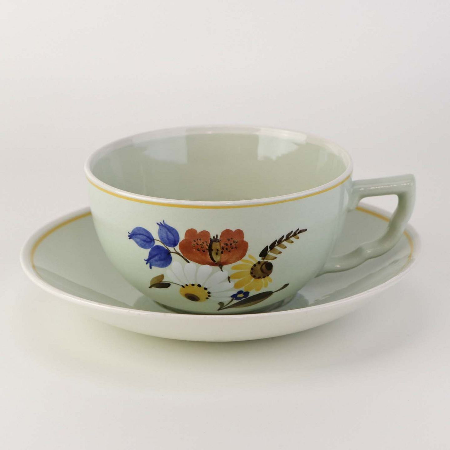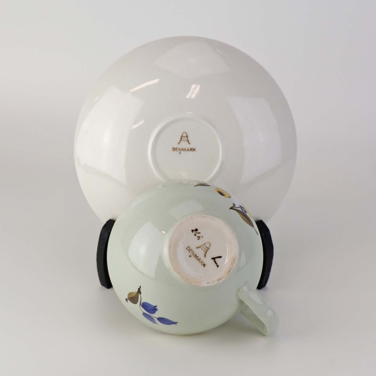 Tekop med underkop i fajance fra stellet Frederiksberg. Nr. 265