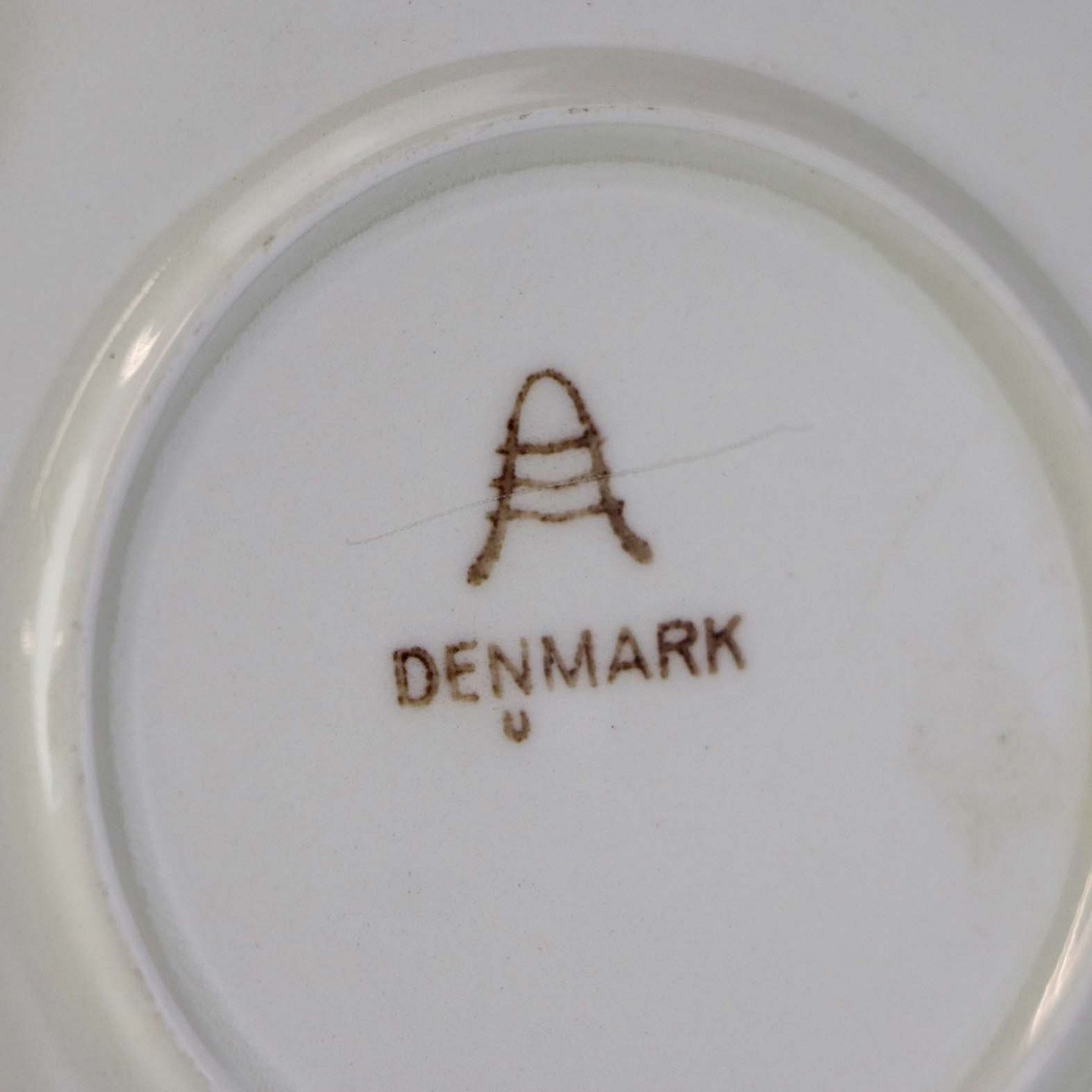Fremstår med mindre mørkninger under glasuren på tallerknens kant samt mindre ujævnhed på tallerknens bagside.