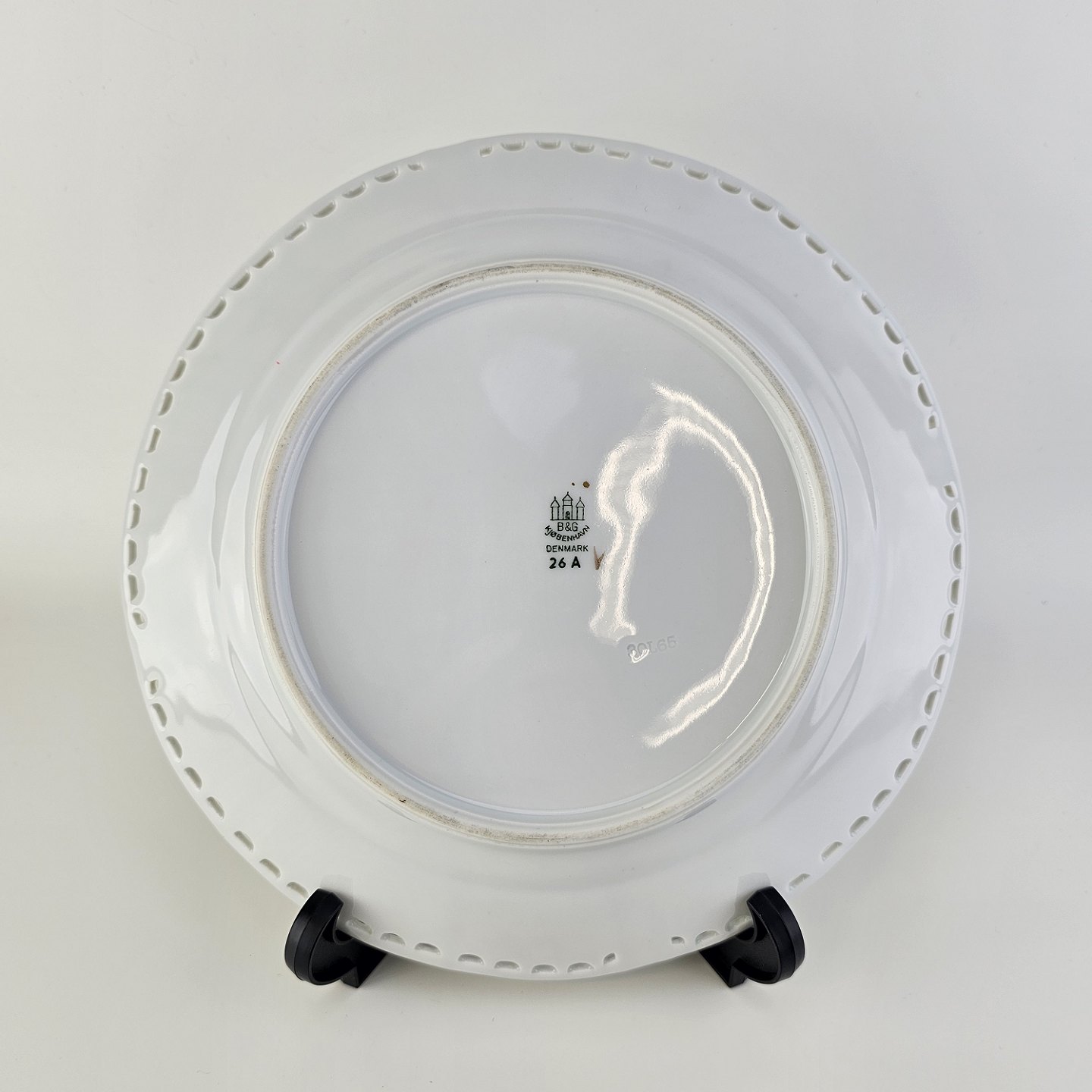 Eremitage er porcelæn dekoreret med hvidtjørn og guldkant, frokosttallerkenen har gennembrudt kant