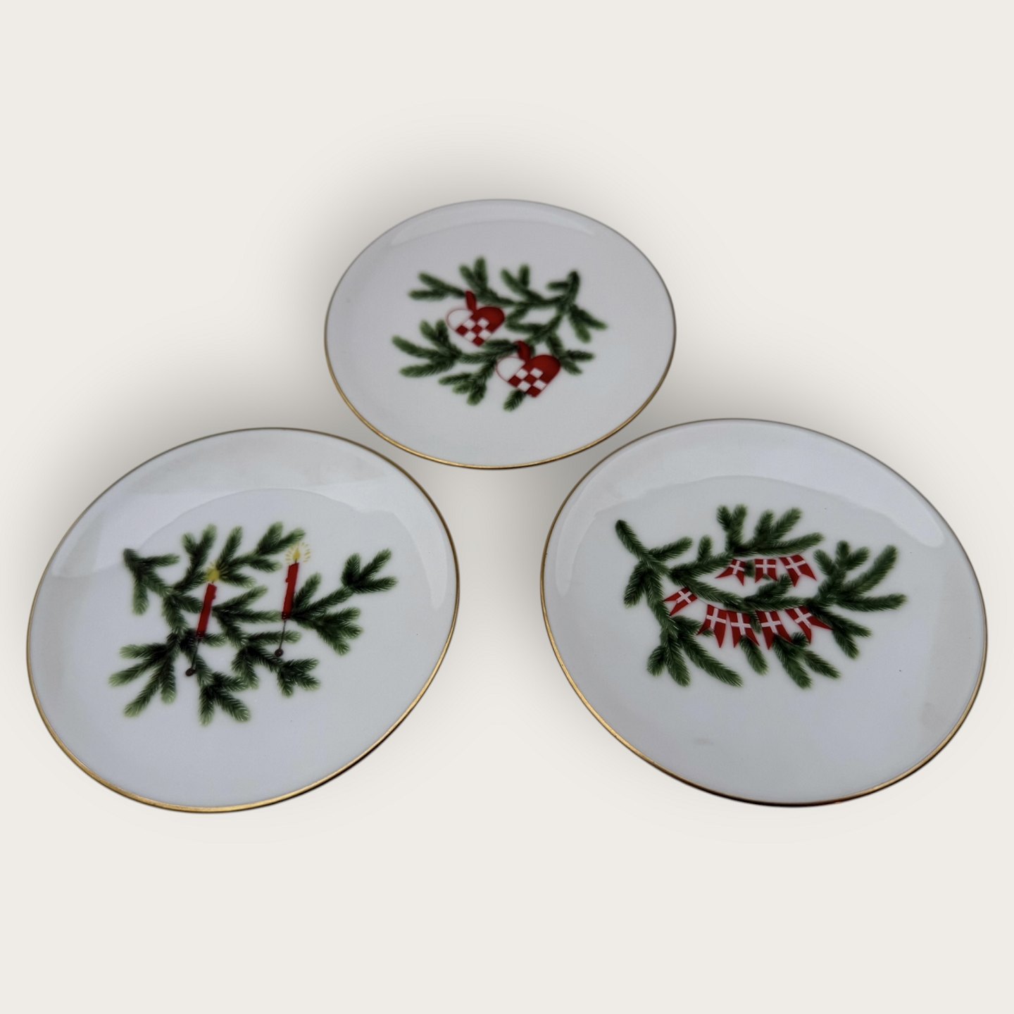 Bing & Grøndahl, 3 small Christmas plates, Merry Christmas Hafnia 87, #2642/5709, 2643/5709 and 2644/5709, diameter 10.5cm, 1st sorting *fine condition*