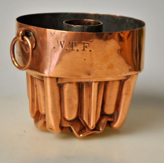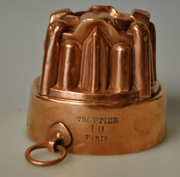 French copper cake mold, 19th century. Stamped: W.T.F. Trottier 10 Paris. H.: 9 cm. Dia.: 10 cm.