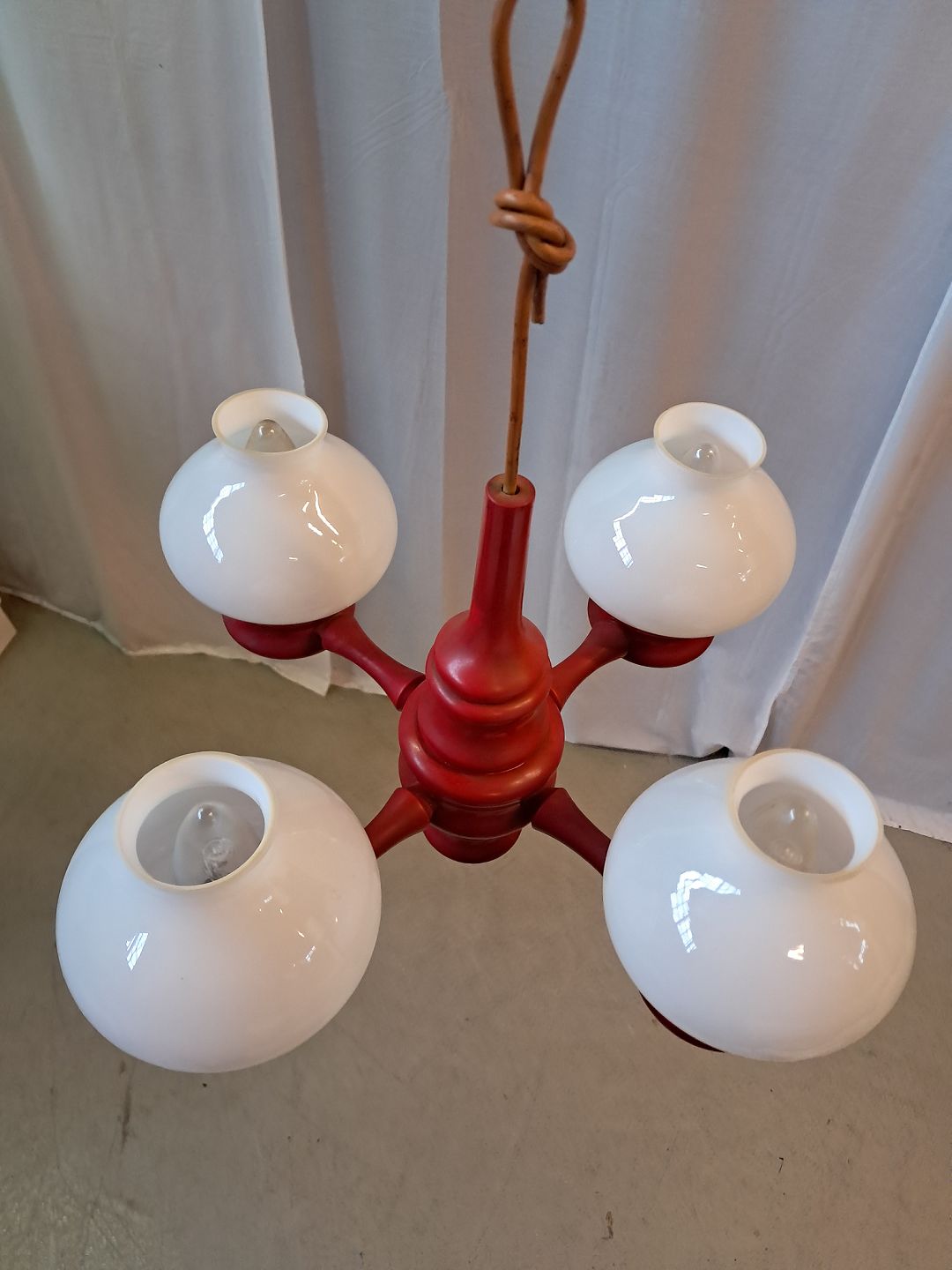 Malet loftlampe med 4 glasskærme, fra 1980erne.