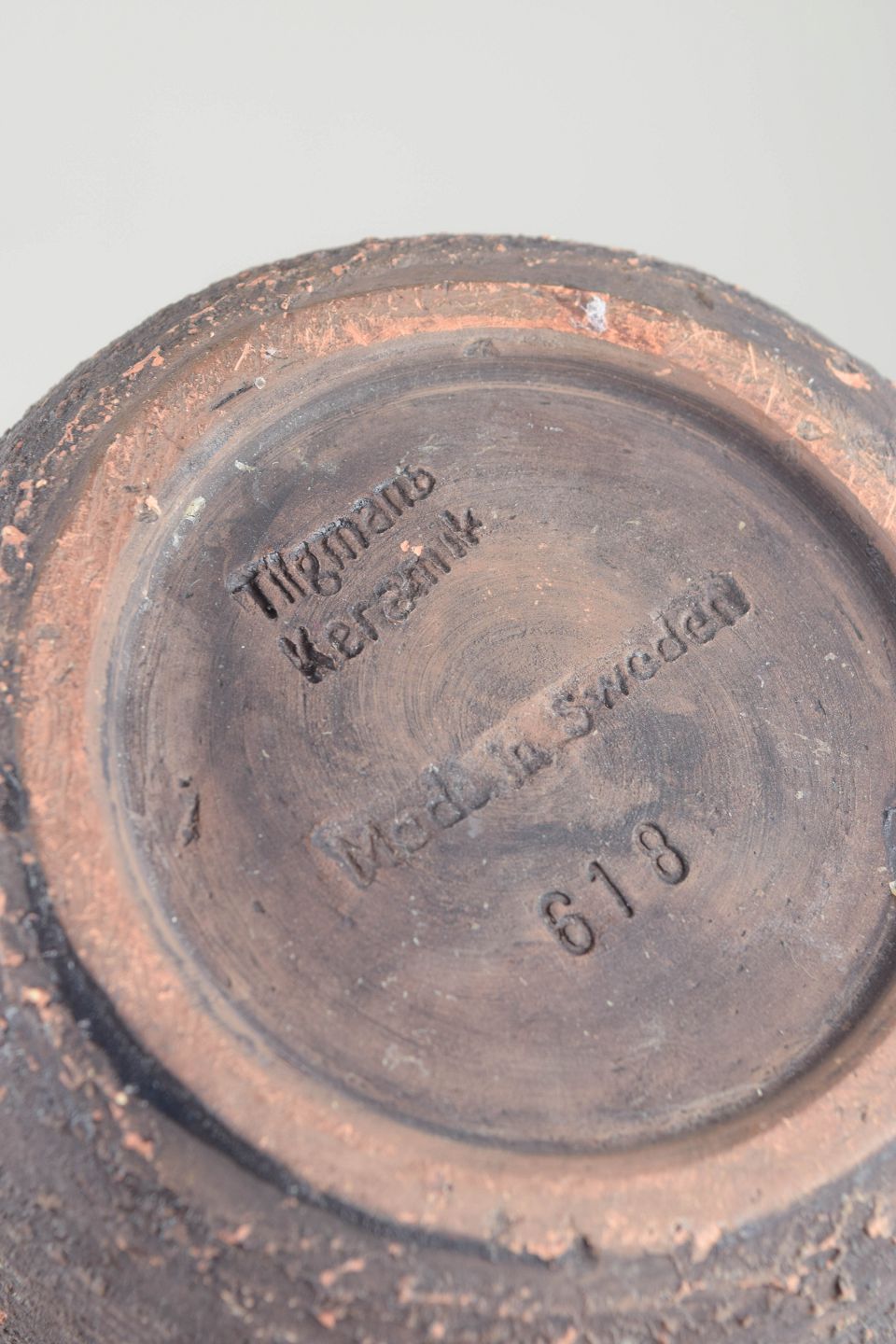 Tilgmans Keramik of Gothenburg was active from the 1940s to the 1970s and became known for its decorative vases and figures featuring relief patterns and glazed inlays in vibrant colours. The production included both series-made and hand-decorated pieces, often signed by individual decorators. The workshop’s distinctive rustic surfaces and bold glazes make Tilgmans a defining name in Swedish mid-century ceramics.