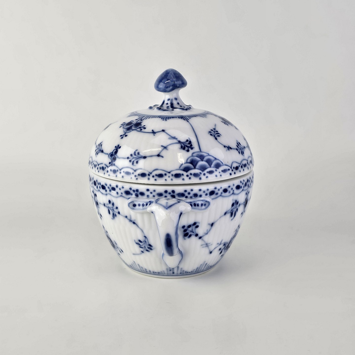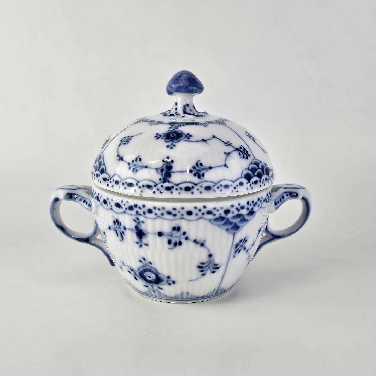 Sukkerskål i kongeligt porcelæn fra stellet Musselmalet Halvblonde