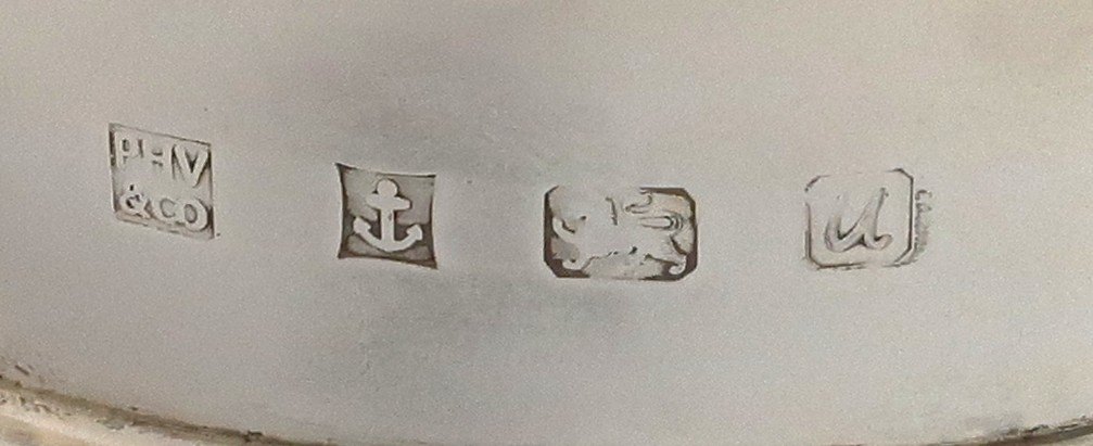 England. Birmingham. Sterling coster with wooden base (925). Diameter 11 cm.