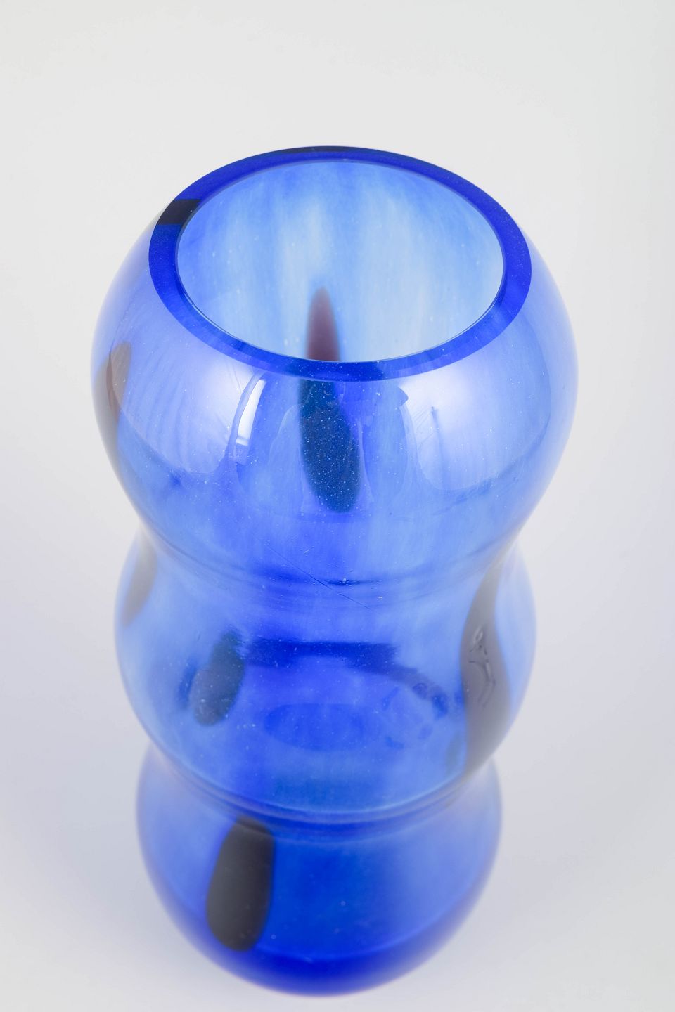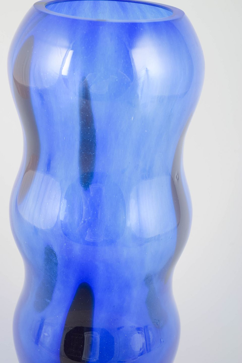 Organically shaped vase in deep blue cased glass with soft, undulating contours—typical of Sahlin’s playful design language at Kosta Boda during the 1990s.