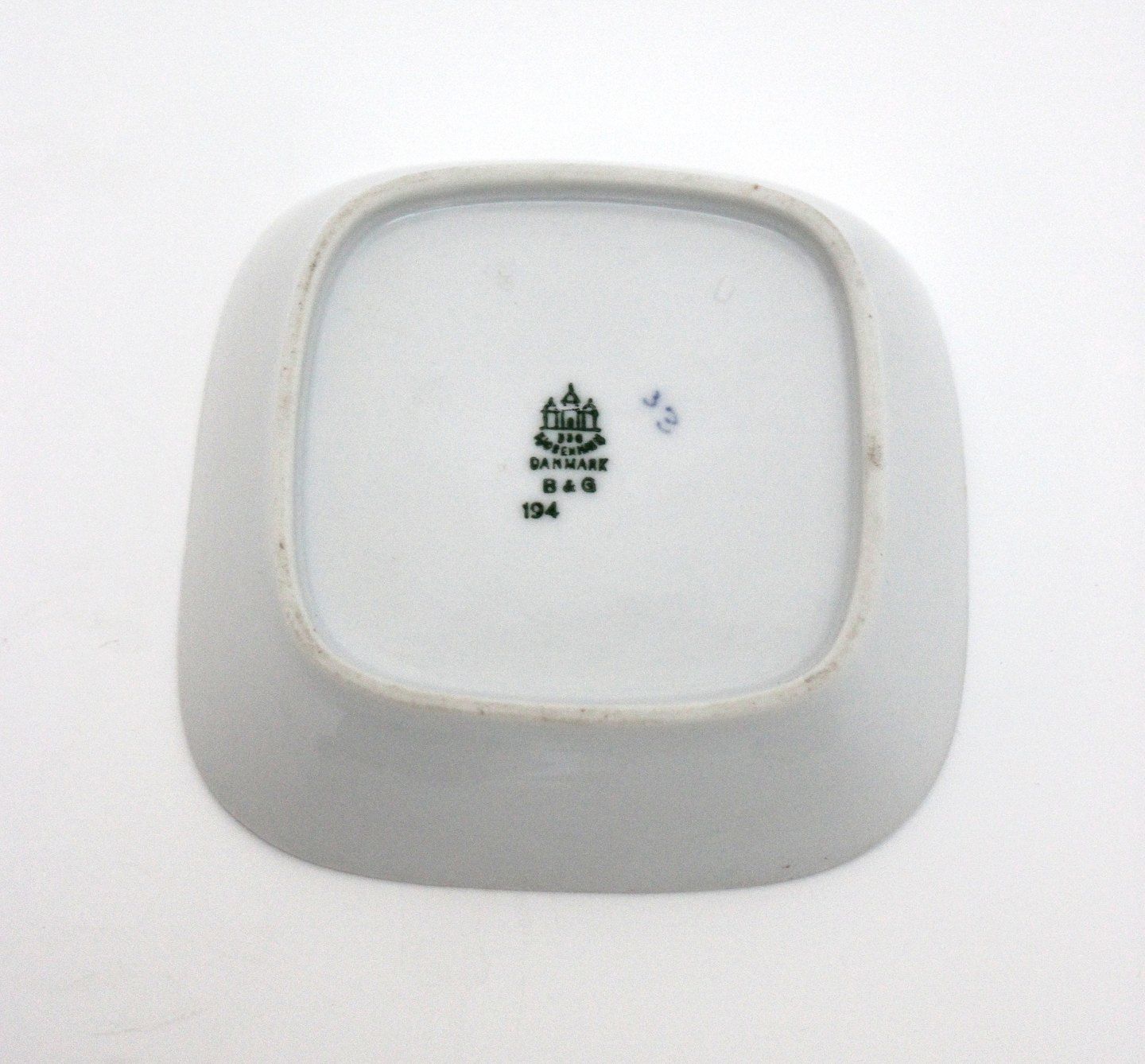 Bing & Grøndahl, Empire, Lille firkantet assiet/skål. 11 x 11 cm. Højde 3 cm. II sortering. Fin stand. Pris: 200 kr. stk. Lager: 1