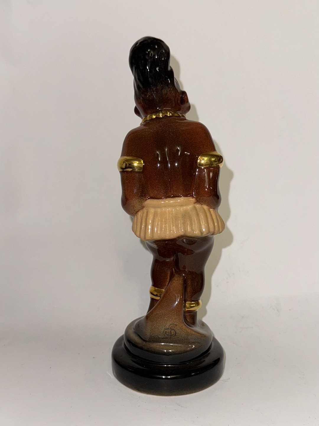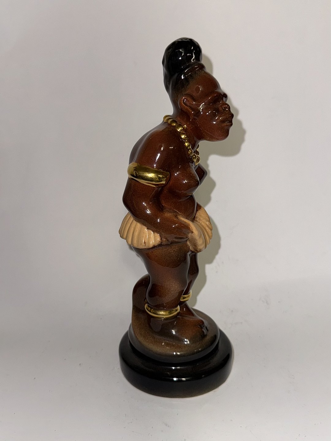 Ceramic figurine of an African woman in a skirt. Made at the Bornholm ceramics workshop Johgus. Appears in good condition. Signed by the artist on the back. Factory mark on the bottom. H. 21.5 cm