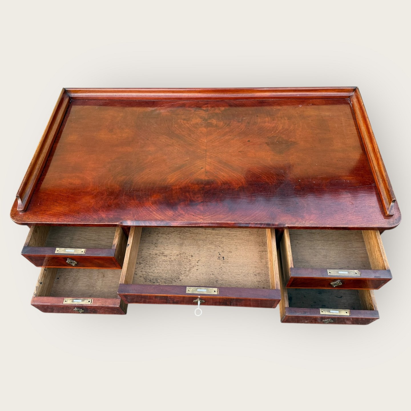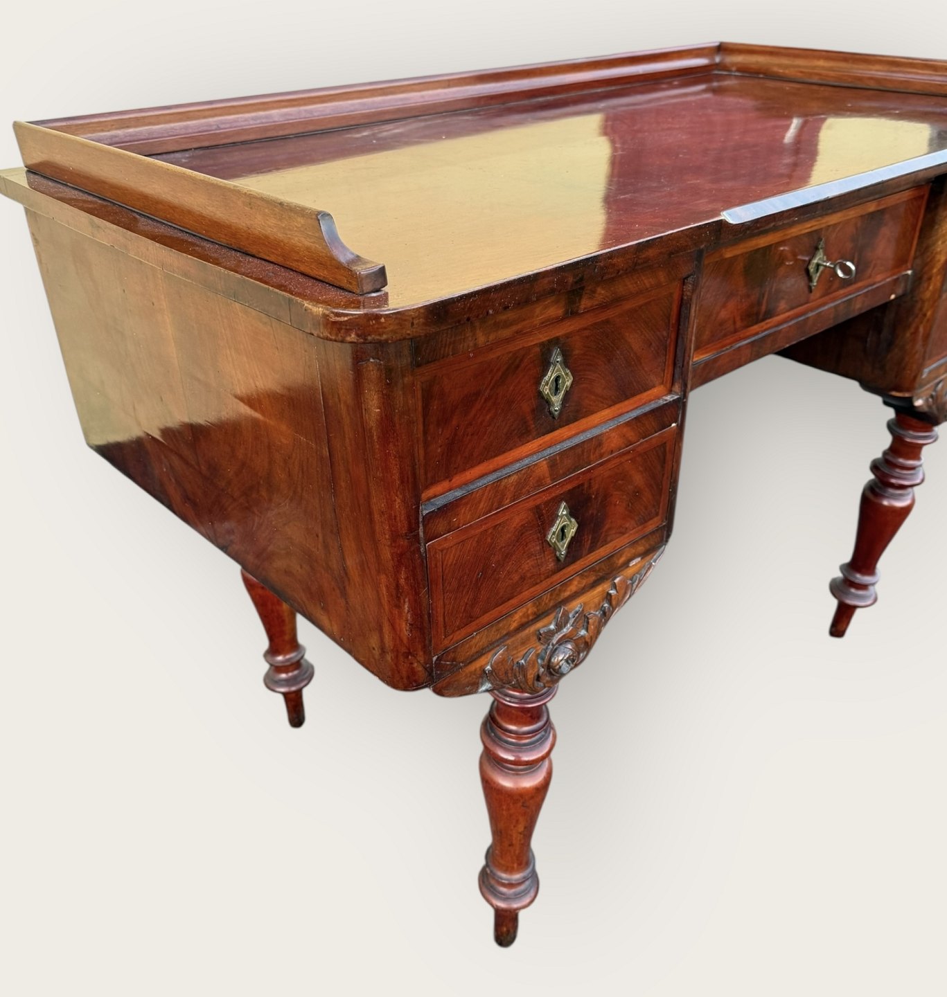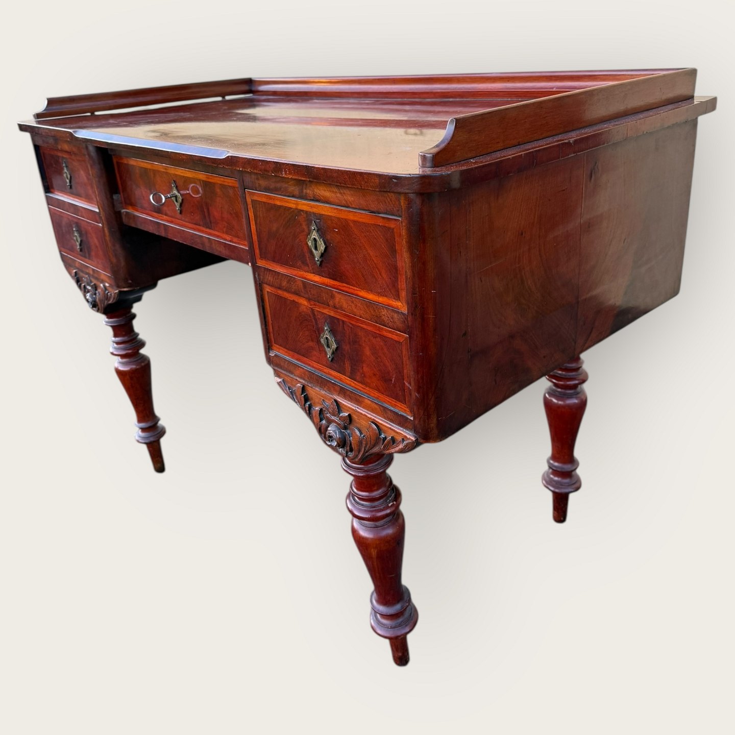 Older desk in mahogany veneer, appears in fine used condition with only simple minor signs of wear, Dimensions: HxWxD 76x109x55cm
