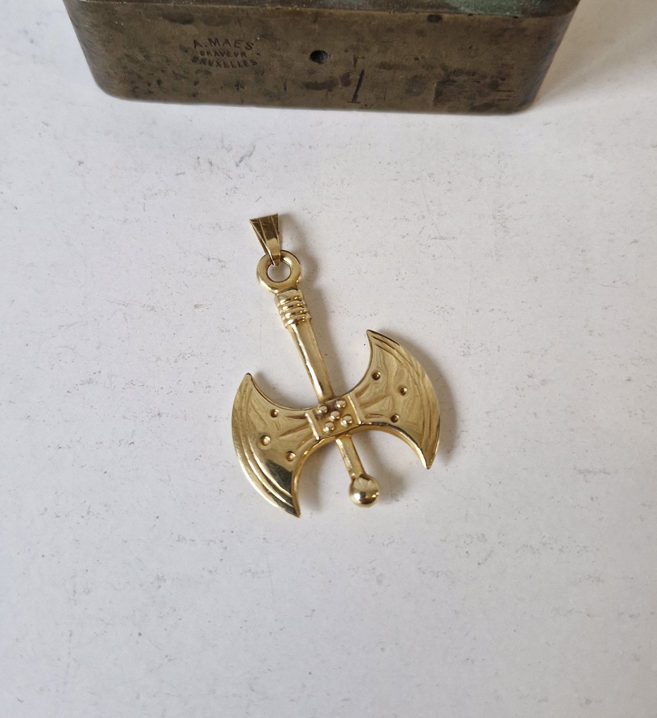 Greek pendant in 14kt gold, made as a double axe - Labrys