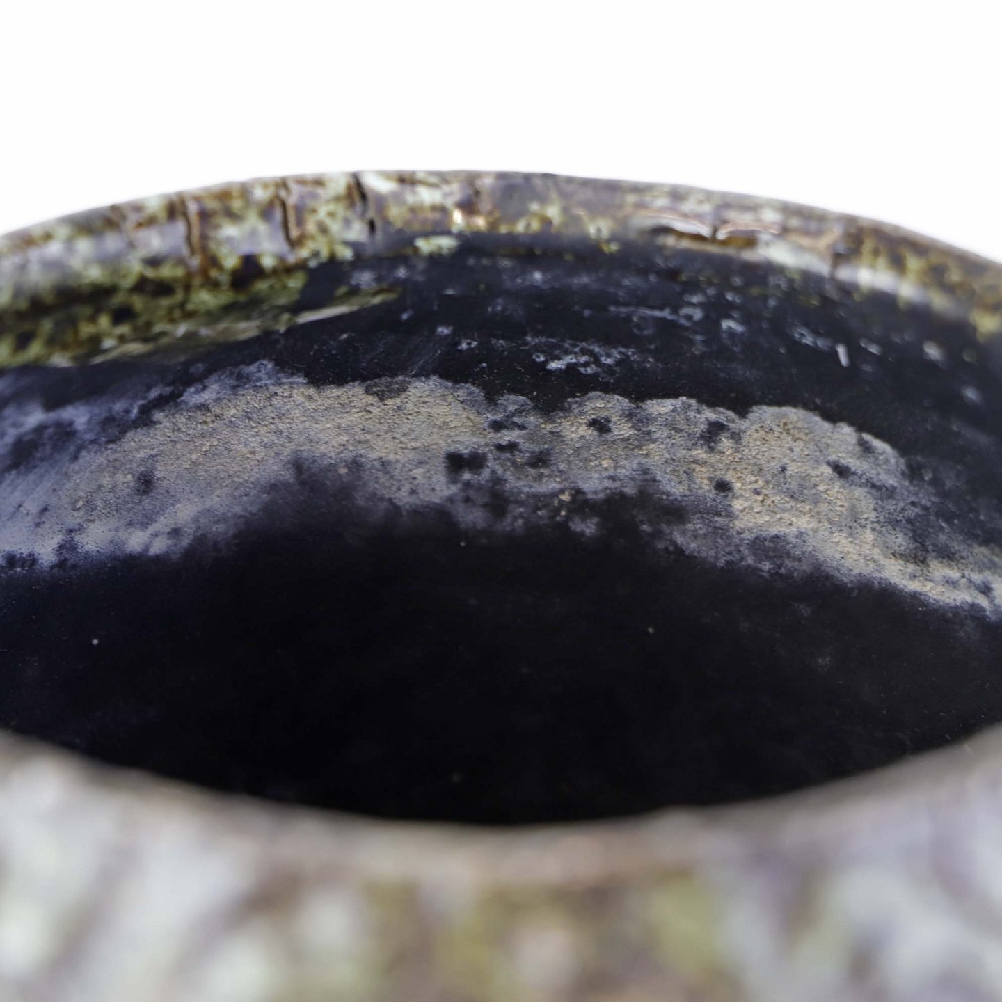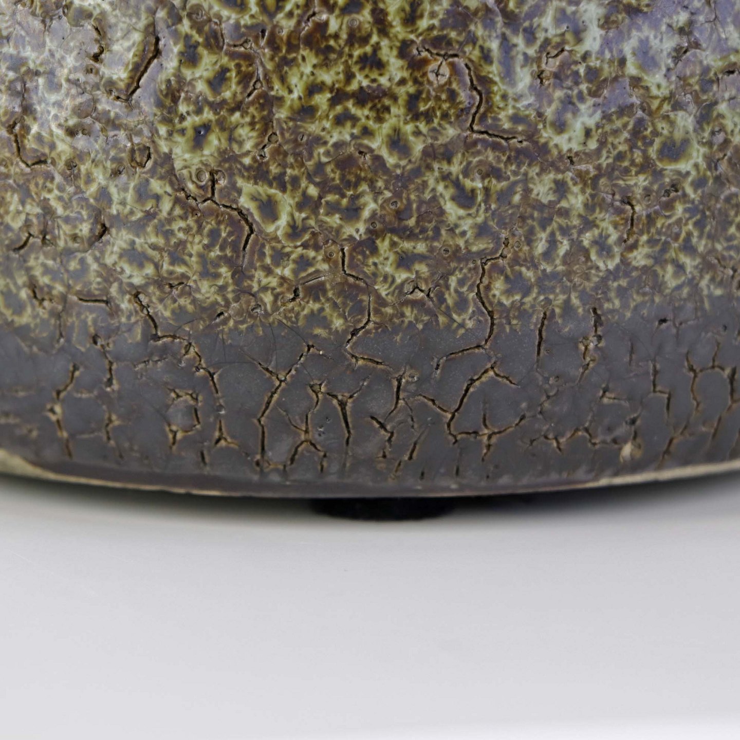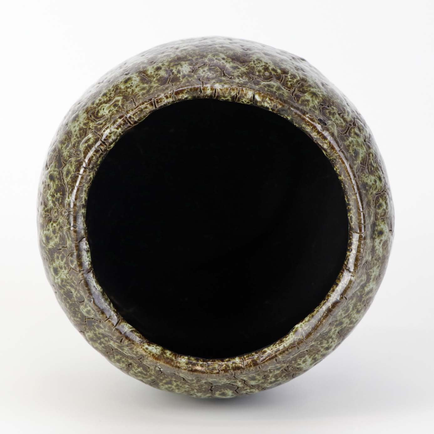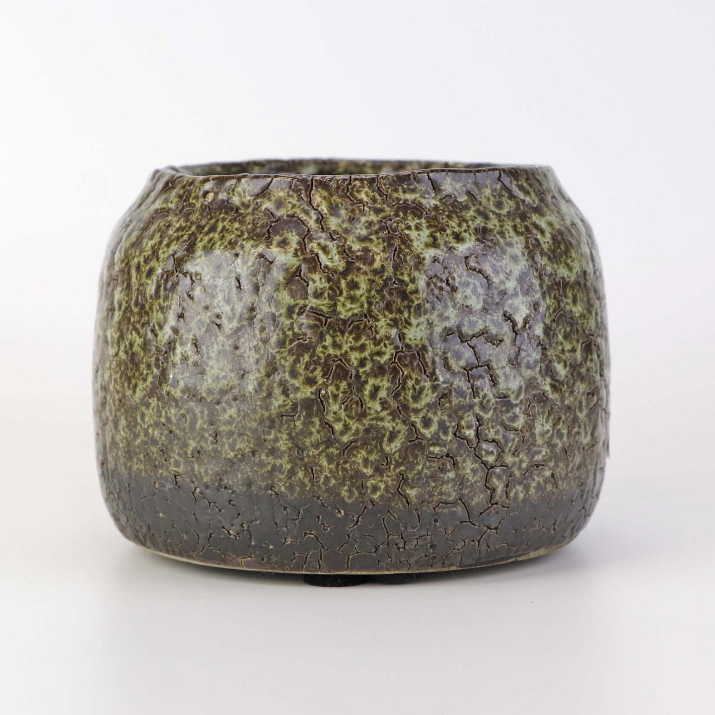 Skjuler til urtepotte i glaseret keramik med krakkeleret mønster i grønbrune farver.