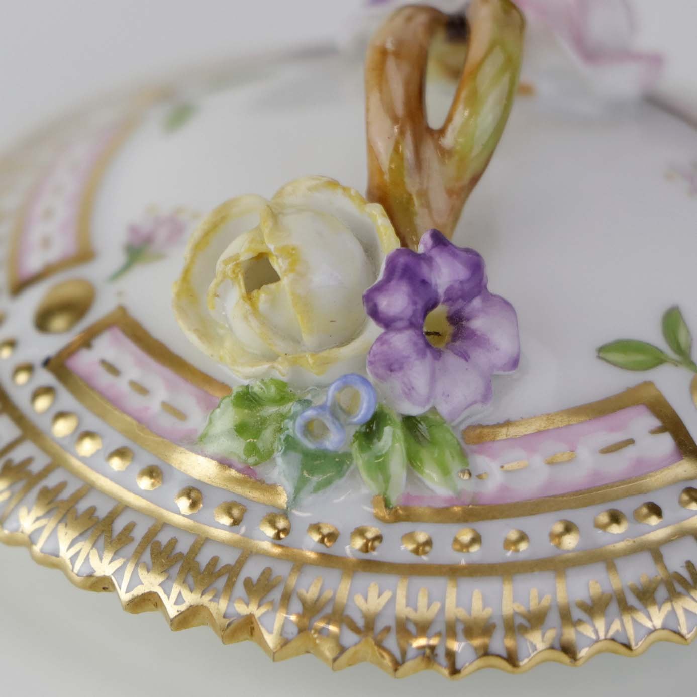 Låg til cremekop i porcelæn fra stellet Flora Danica. Nr 20/3514