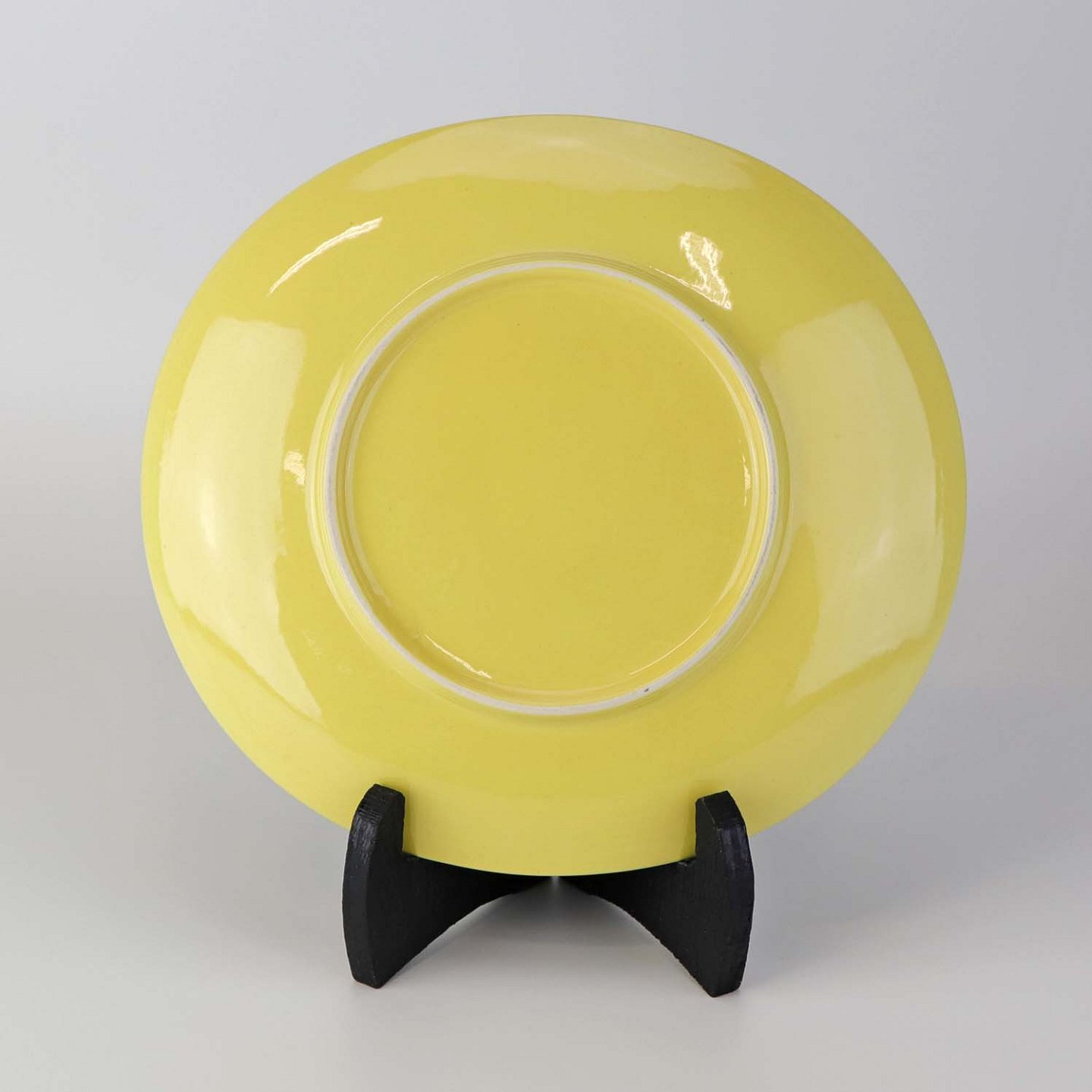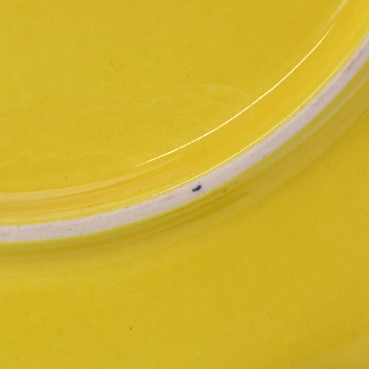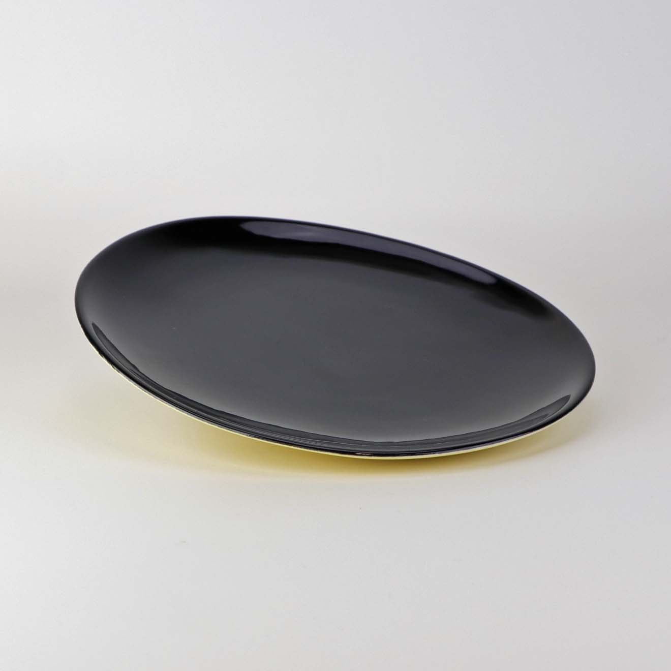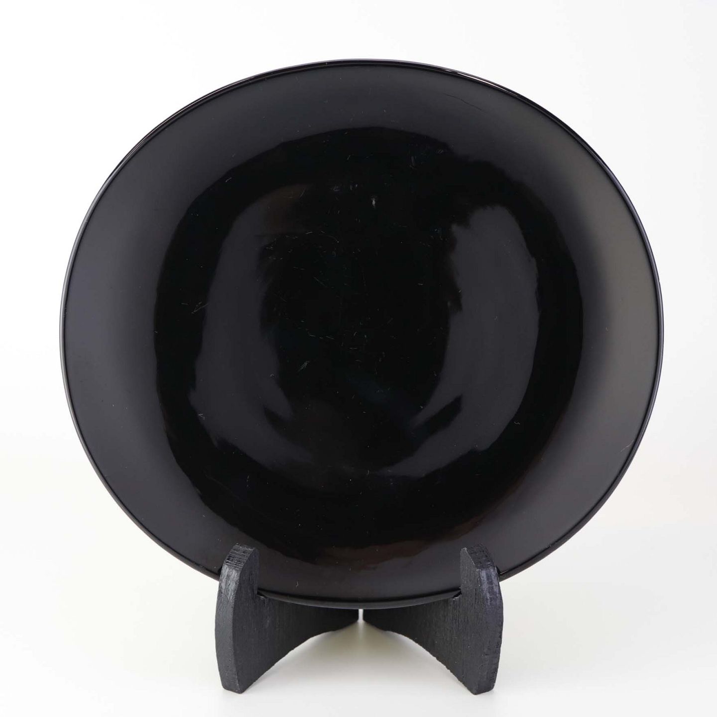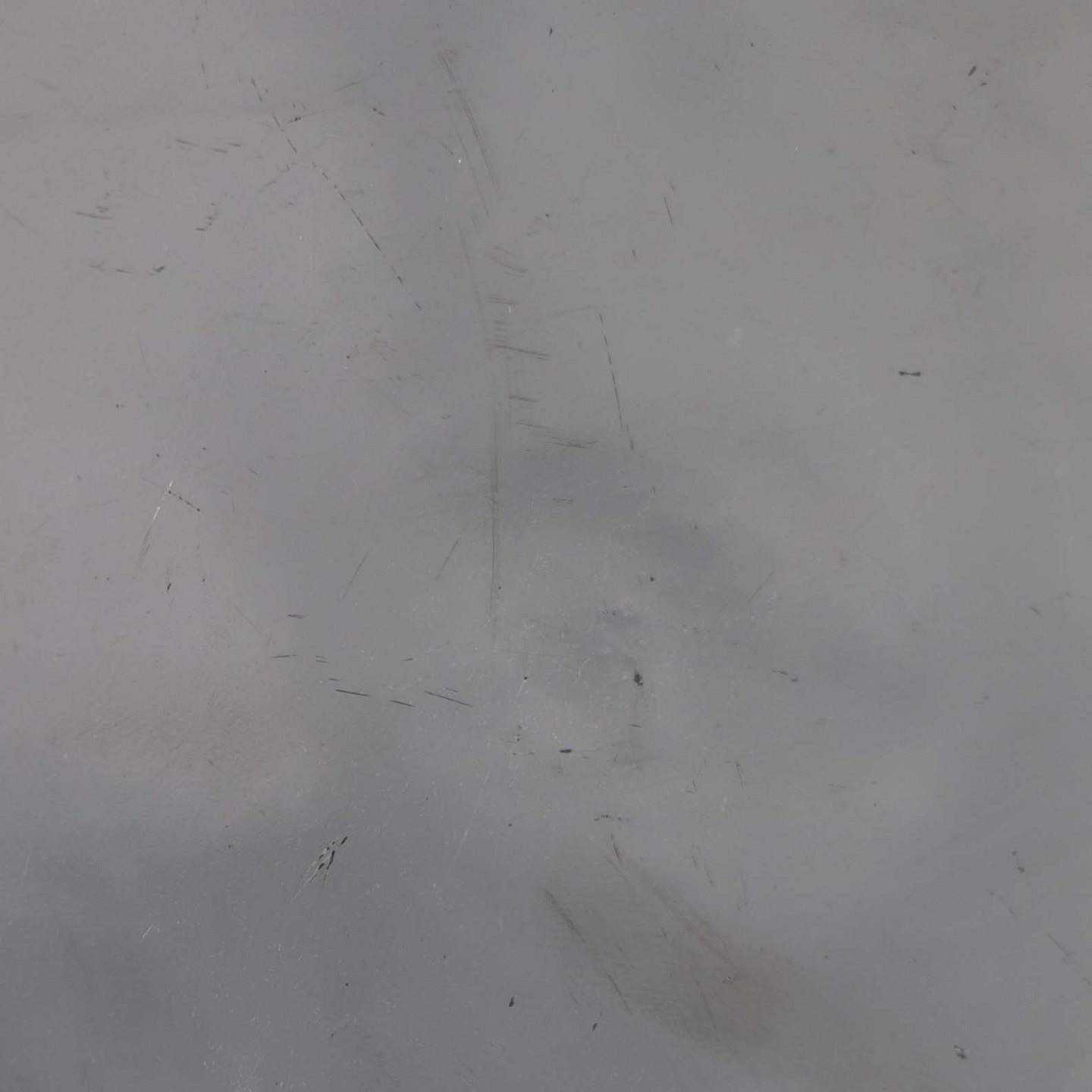 Fremstår med let ridset inderside samt mørk plet på bundkanten.