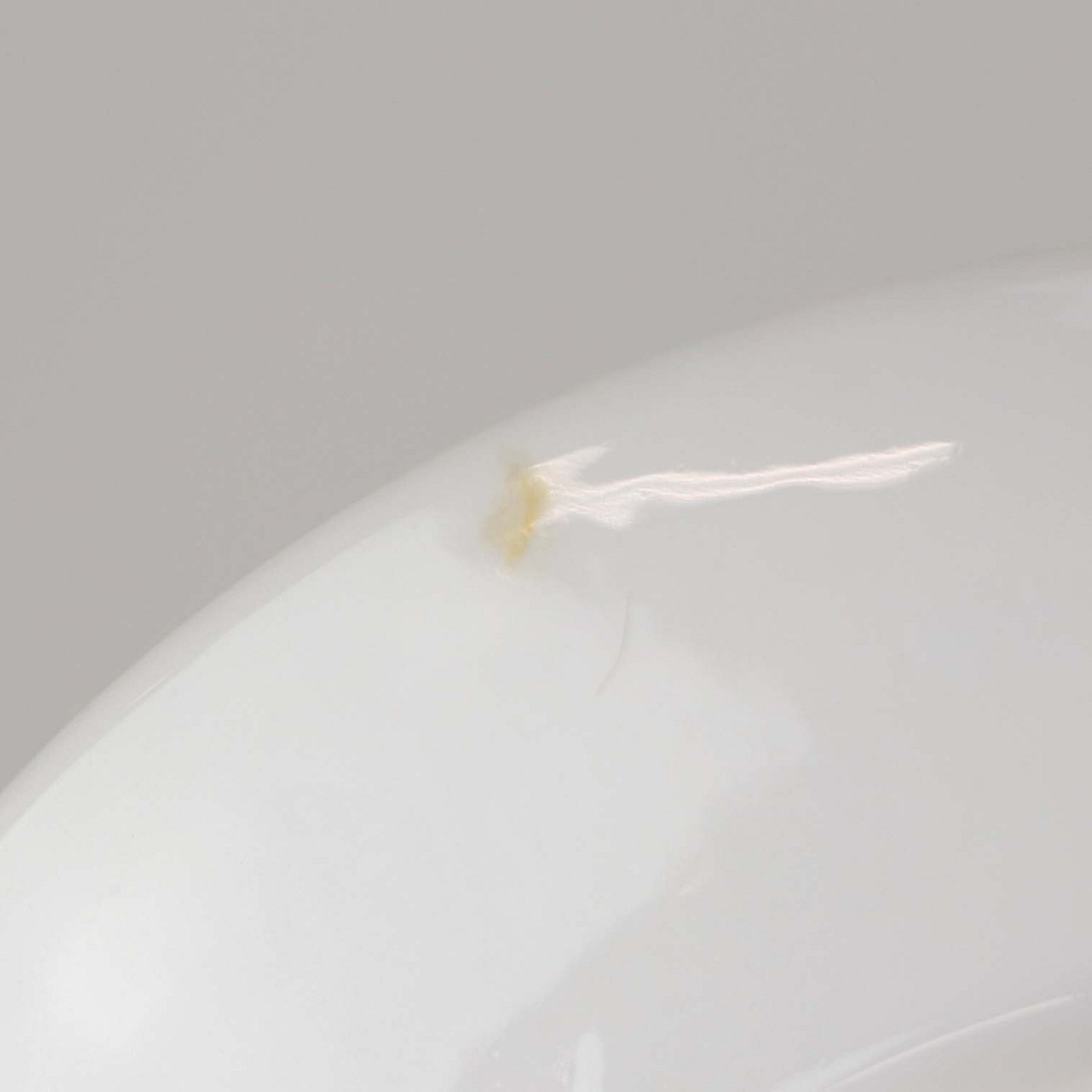 Fremstår med enkelt gul plet på underkoppens bagside.