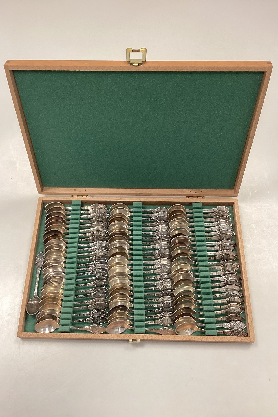 214 pieces of mixed spoons from different towns, collected in 3 wooden collection boxes.
