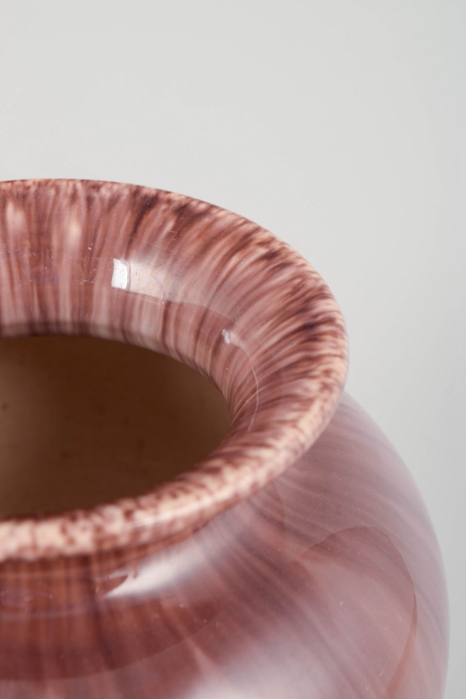 The mid-20th century was a vibrant period for European studio pottery, with makers exploring expressive glazing and hand-thrown forms. Vertical drip glazes—like those on this vase—were prized for their movement and individuality, making each piece visually unique. Many artists worked in small workshop settings, producing limited, character-rich pieces that are now appreciated as fine examples of mid-century ceramic craftsmanship.