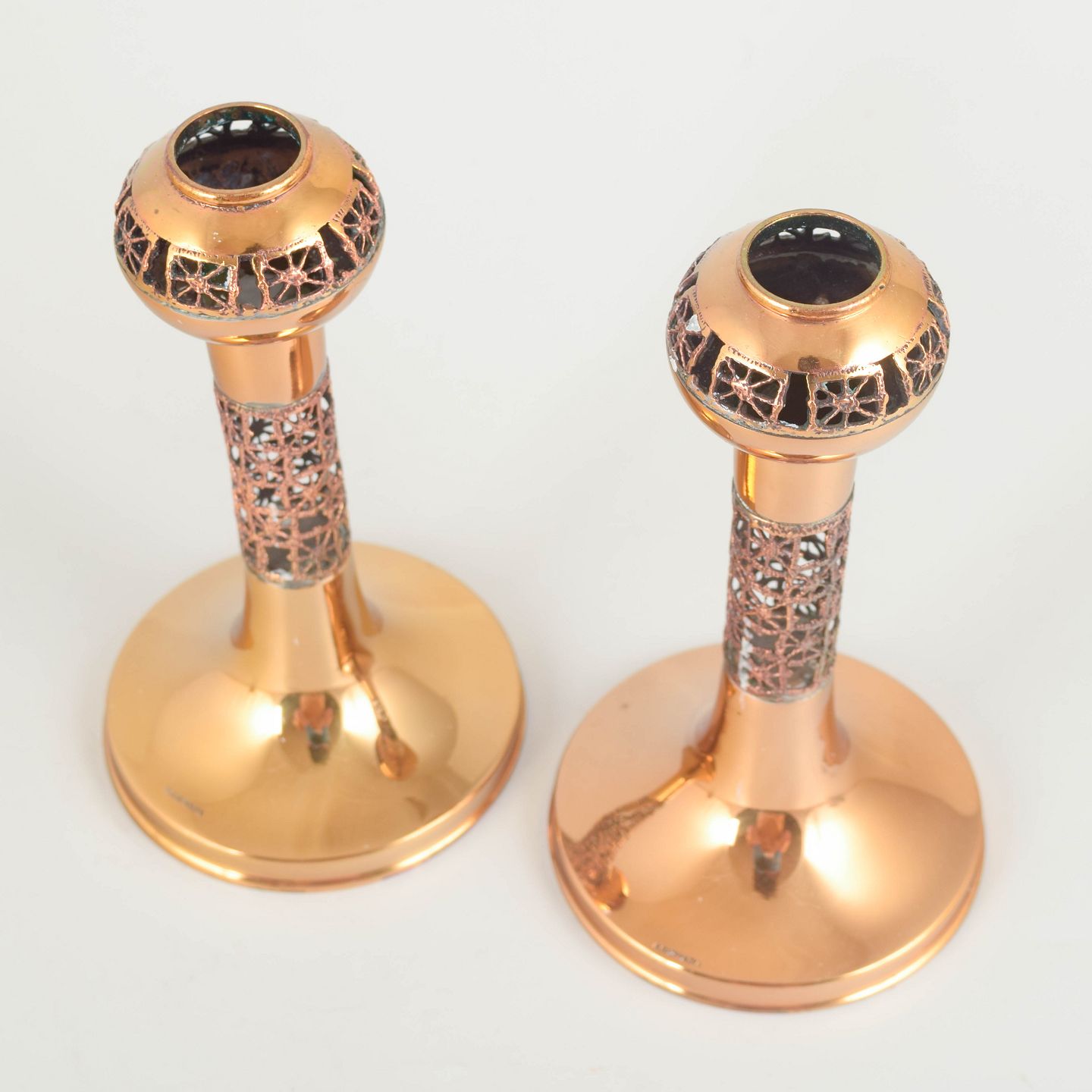 Decorative candlesticks in polished brass featuring Sarpaneva’s characteristic pierced, jewellery-like detailing. A striking pair from the Finnish modern design tradition.