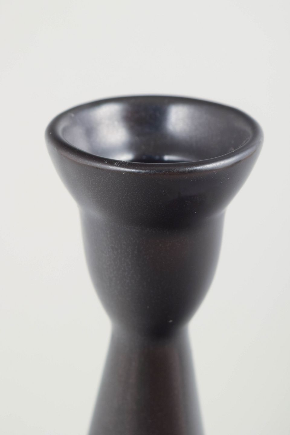 Elegant cone-shaped candlestick in black-glazed stoneware with a smooth matte surface and bowl-shaped top.