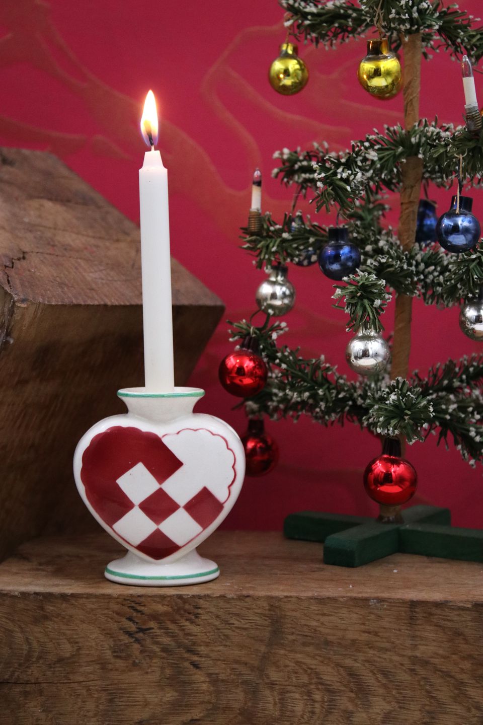 Old red Aluminia faience Christmas heart for small candle. H: 7.5cm.