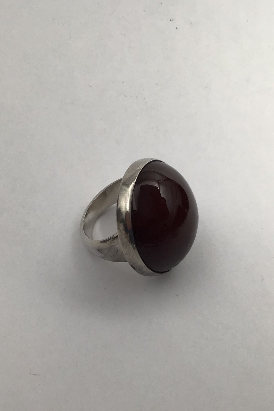 Georg Jensen Sterling Silver Ring No. 90 C (Red Brown Agate)