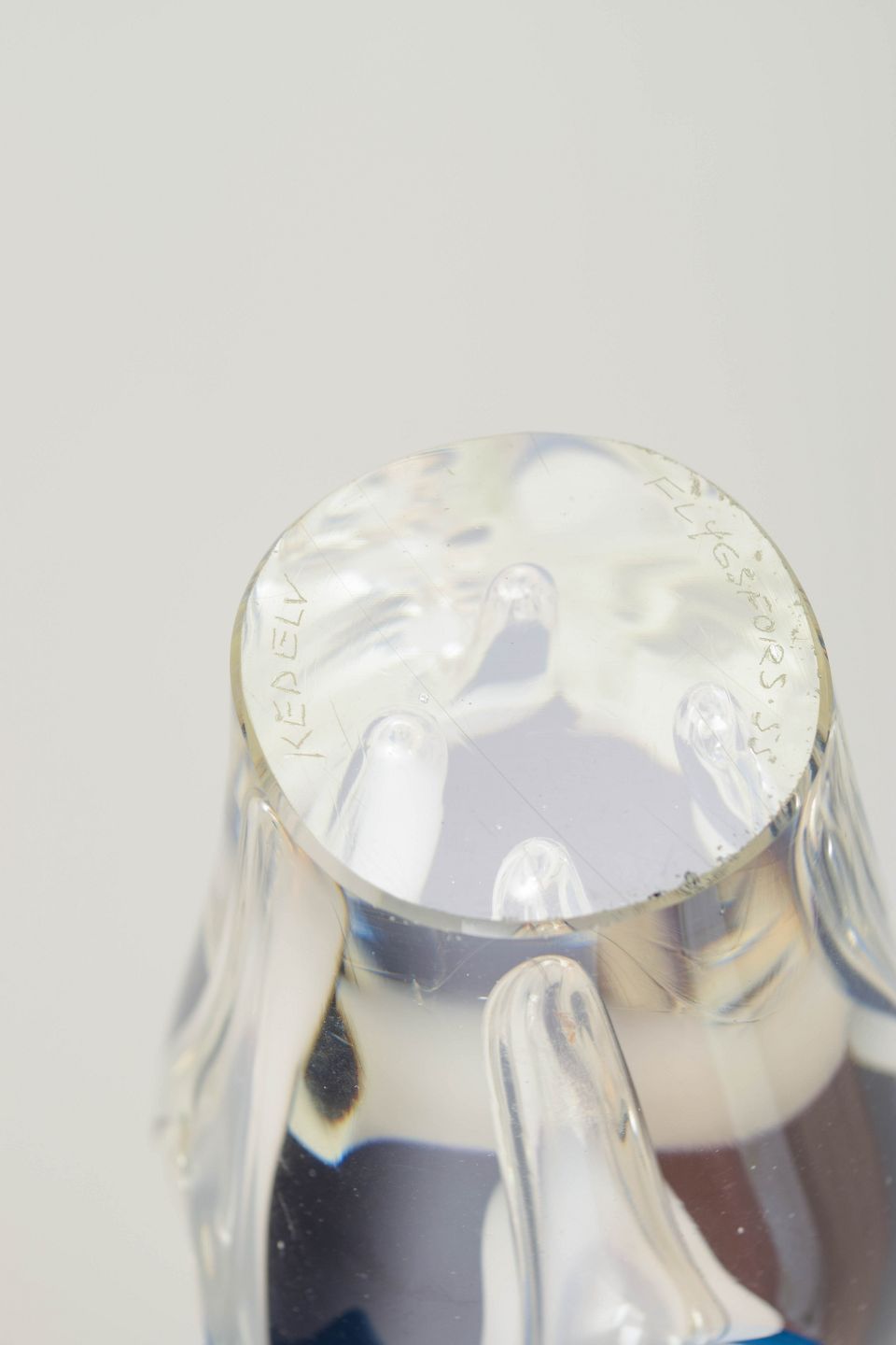 Paul Kedelv (1917–1990) worked at Flygfors Glasbruk from 1952, where he created the Coquille series—an icon of Swedish 1950s art glass. The series is celebrated for its organic, flame-like silhouettes and layered colour construction, giving each piece a uniquely fluid and sculptural presence.