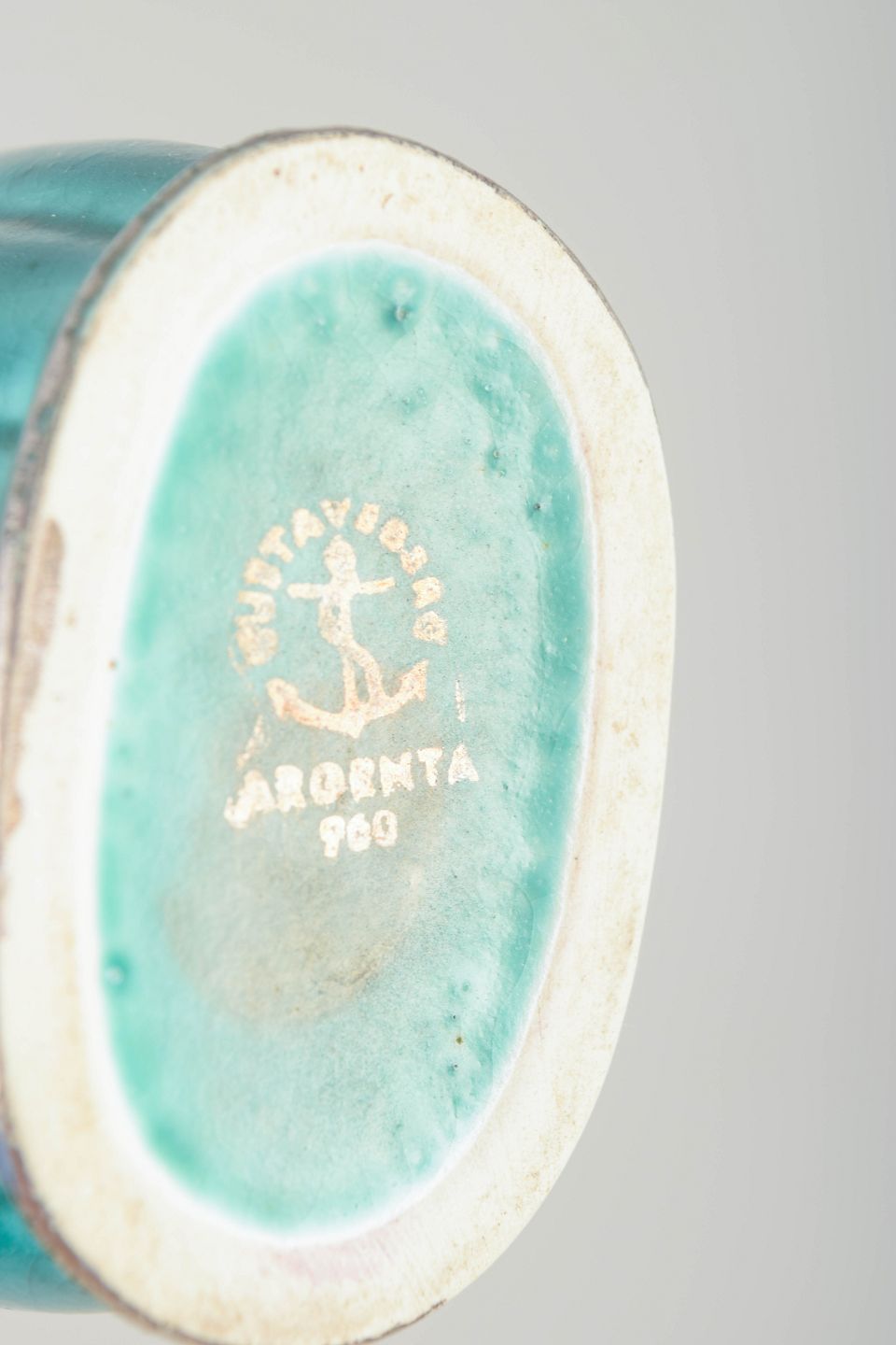 Willhelm Kåge (1889–1960) was one of Gustavsberg’s leading designers and created the Argenta series in the 1930s. The series combines rich coloured glazes with decorative silver inlays and is among the most recognisable expressions in Swedish ceramic design. Kåge’s work for Gustavsberg received international acclaim and remains highly collectible today.