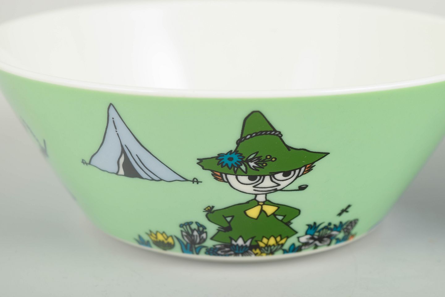 Arabia Finland has produced Moomin tableware since the 1990s in collaboration with Moomin Characters, using Tove Jansson’s iconic mid-century illustrations. The series is now highly collectible, with many motifs released for limited periods, making the bowls sought after among collectors worldwide.