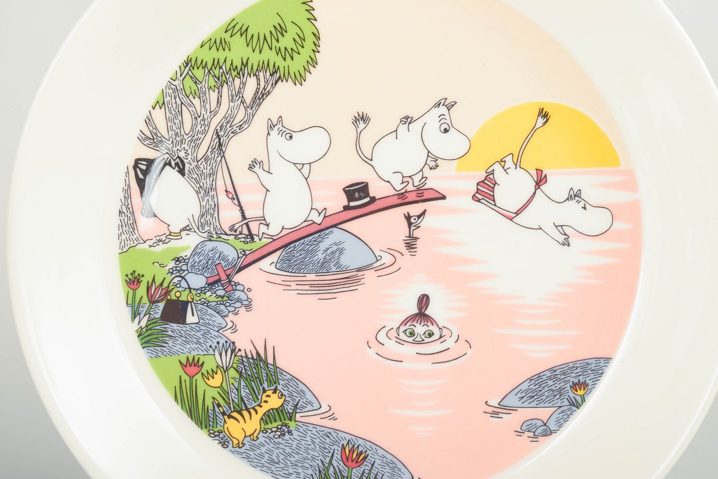 Arabia Finland has produced Moomin tableware since the early 1990s in close collaboration with Moomin Characters. The series has become an international collectible, known for its quality and the beloved characters created by Tove Jansson. Many motifs are issued for limited periods, making certain plates highly sought after.