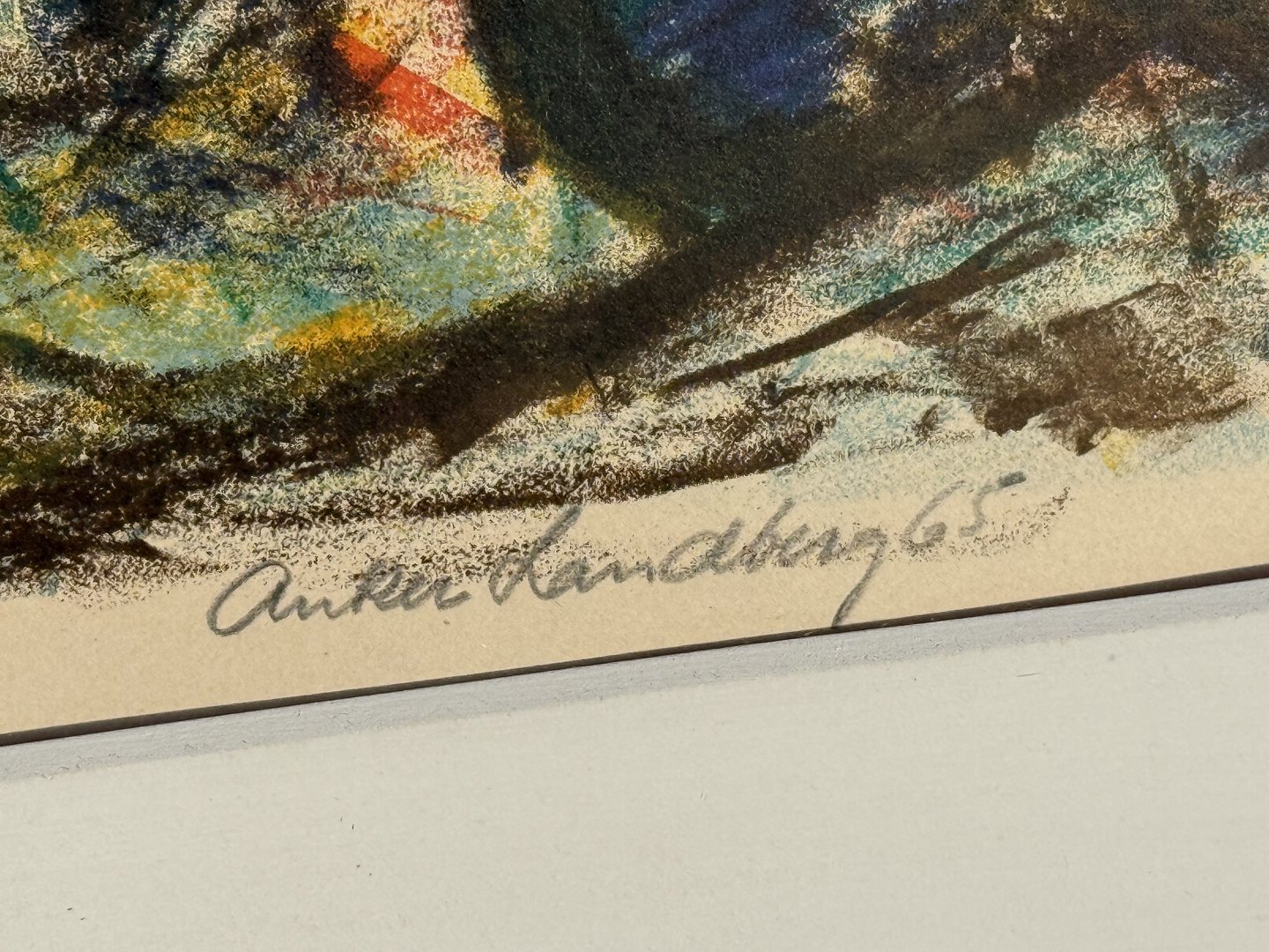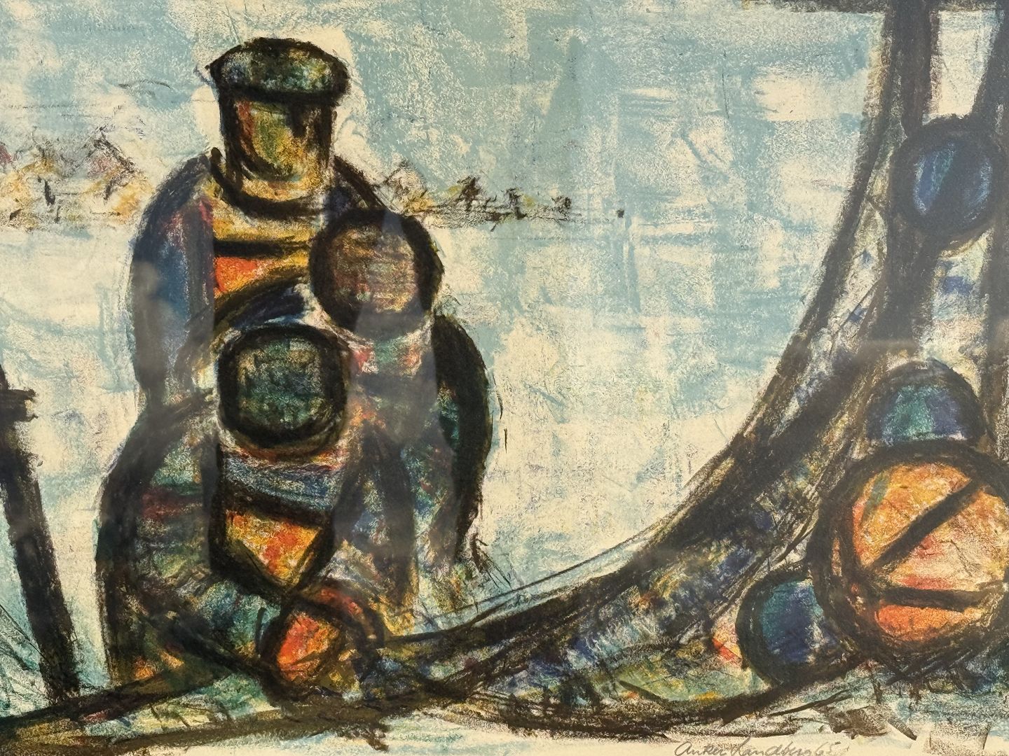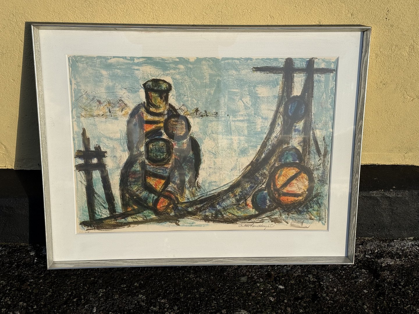 Anker Landberg, Lithograph in frame, Fishermen repairing nets, signed Anker Landberg 65, Dimensions: 67x46cm, Dimensions with frame: 82x63cm *fine condition*