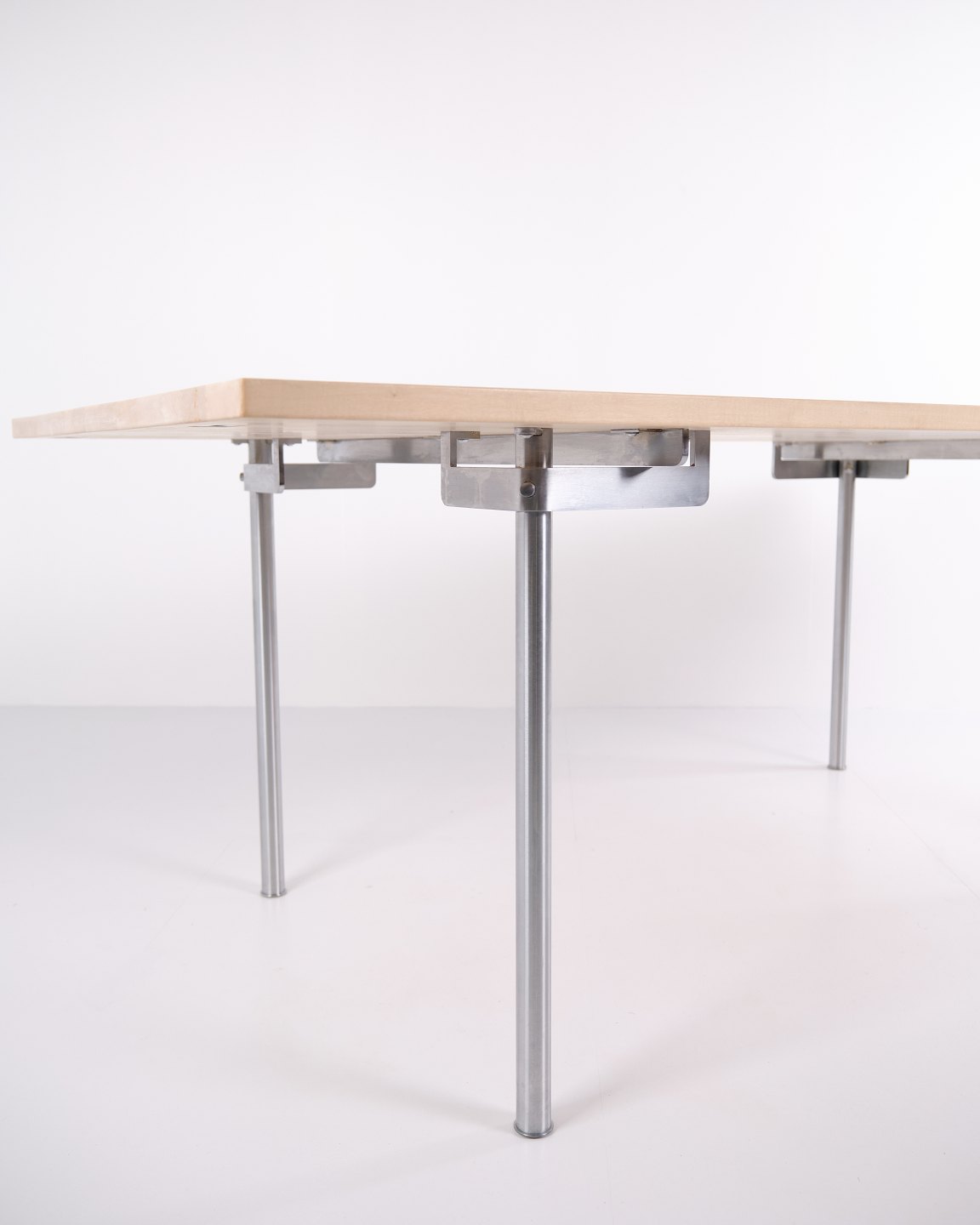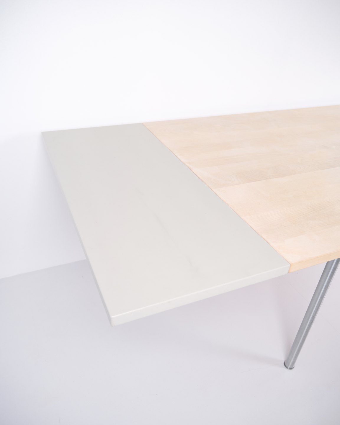CH318 dining table designed by Hans J. Wegner and produced by Tranekær Møbler. Made in solid beech and supplied with two extension leaves of 40 cm each, allowing additional table length when needed. A classic Wegner design with strong material quality and a timeless expression.
