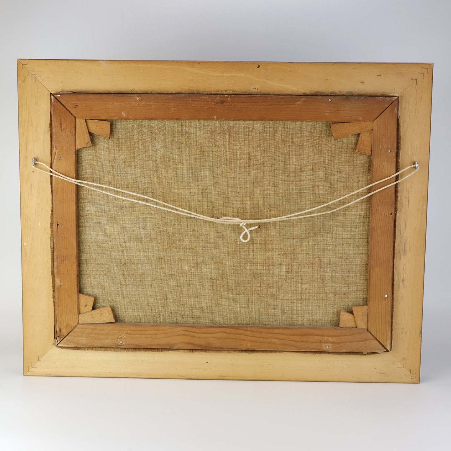 Fremstår med to minimale huller i lærredet samt mindre brugsspor på rammen.
