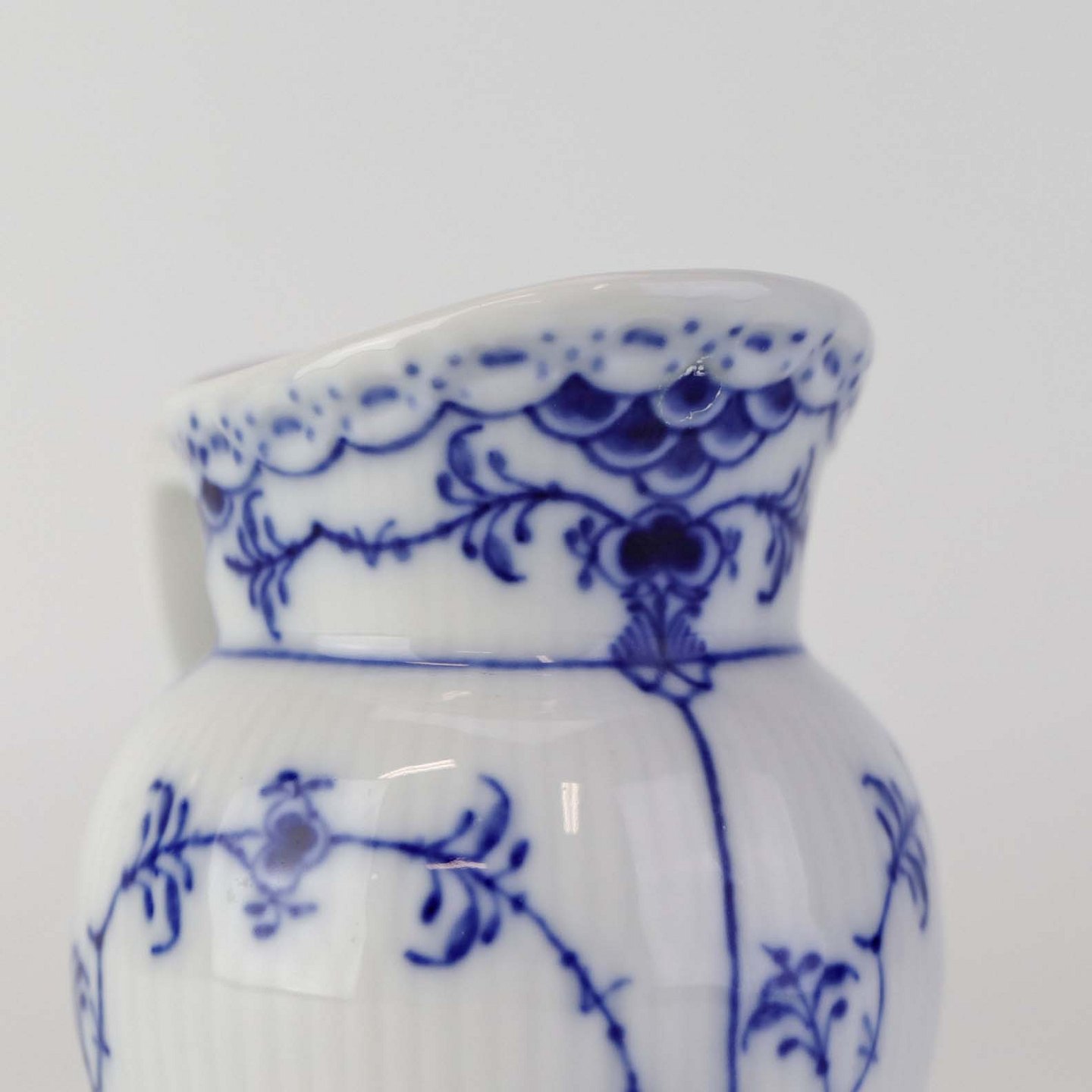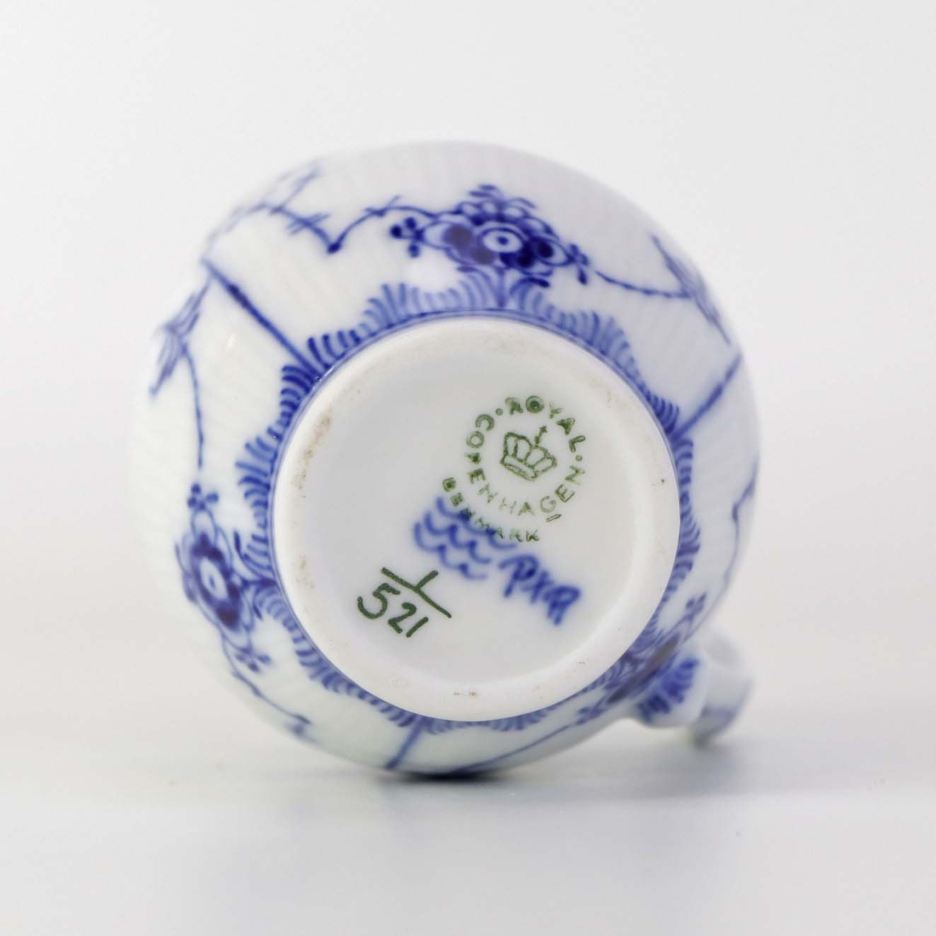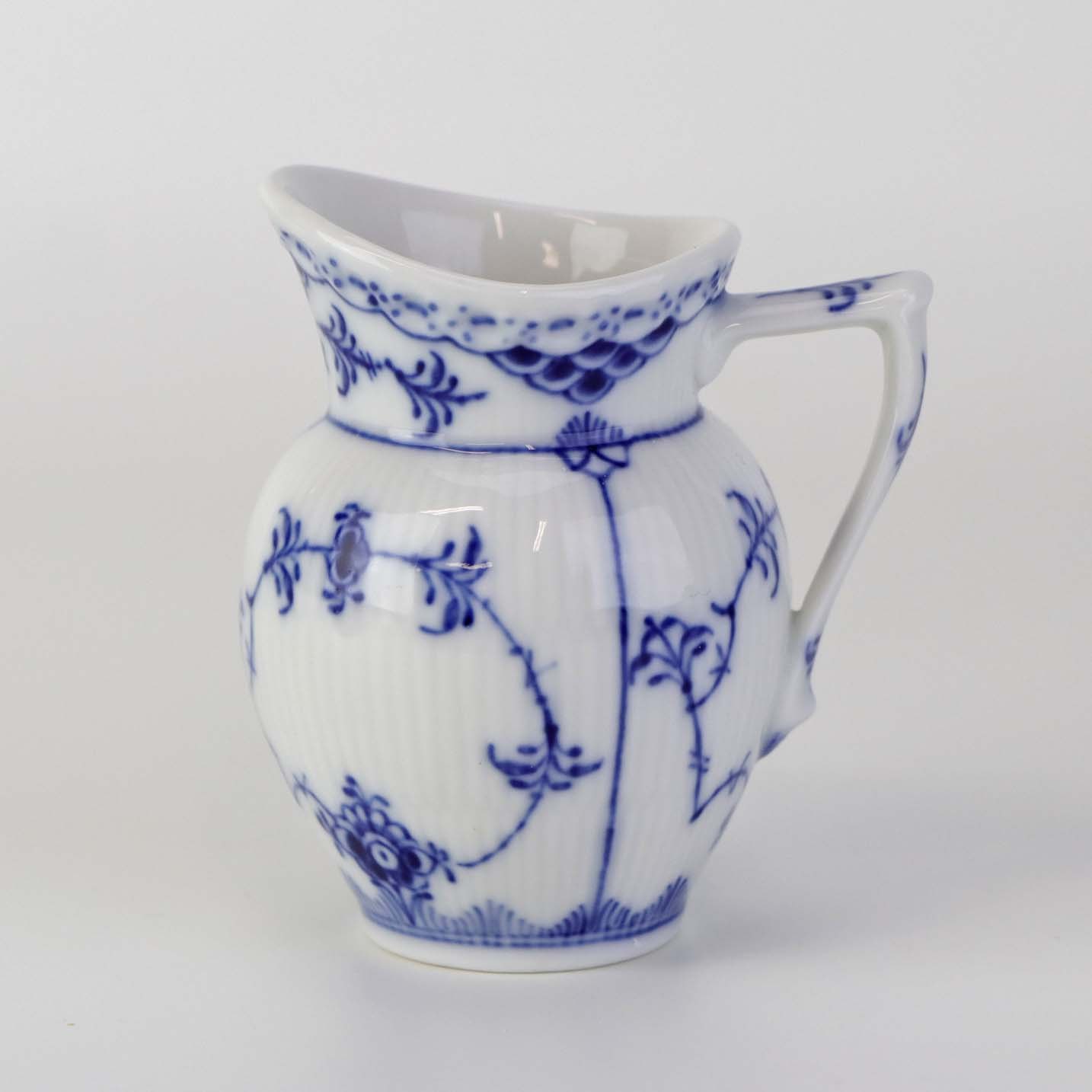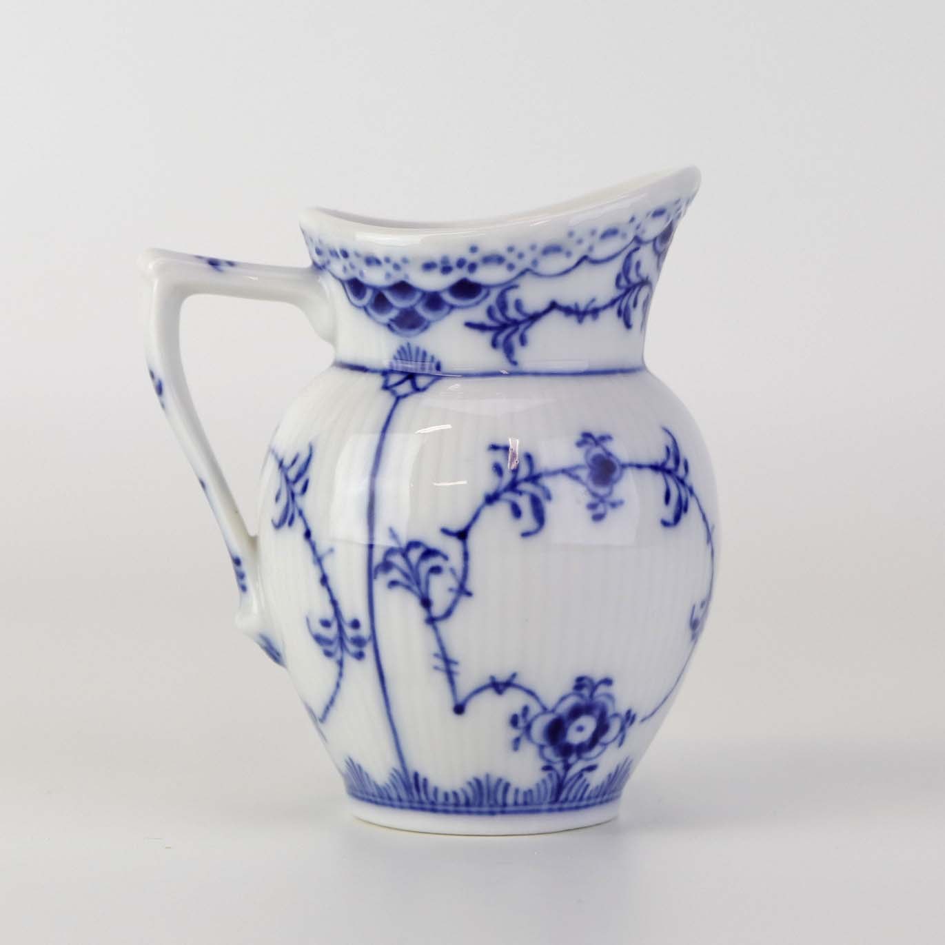 Lille flødekande i kongeligt porcelæn fra stellet Musselmalet Halvblonde. Nr. 1/521