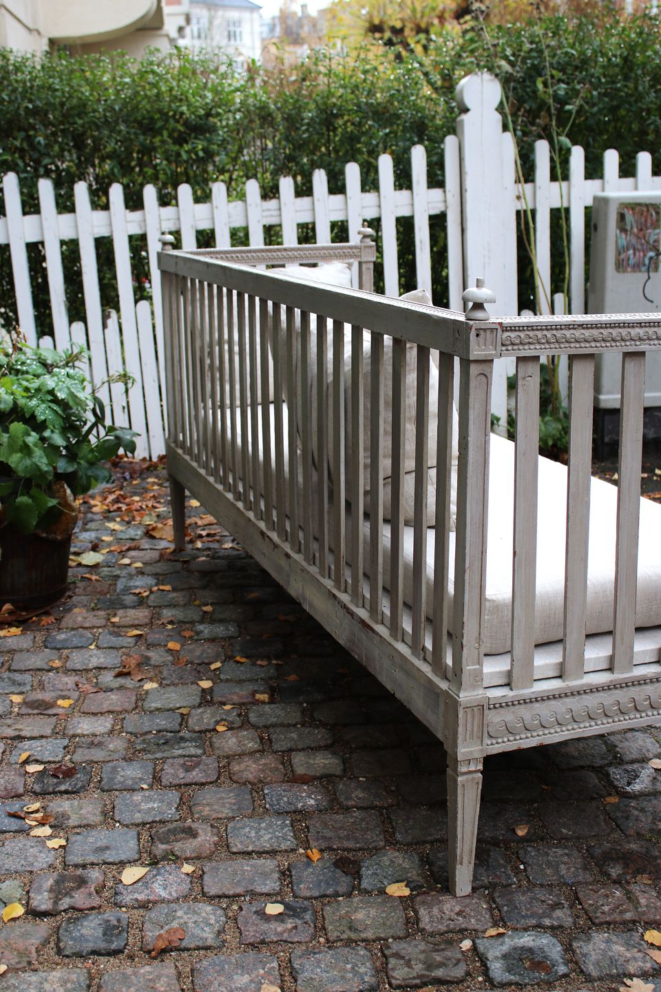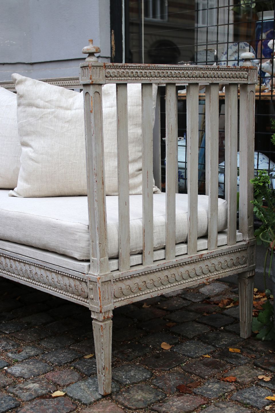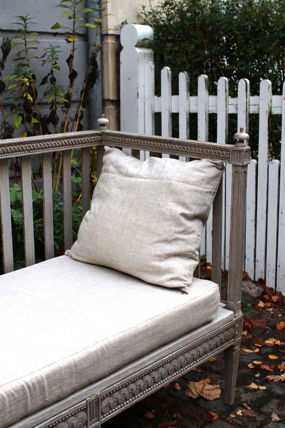Gustavian Swedish 19th century sofa bench in original grey colour with fine patina.
