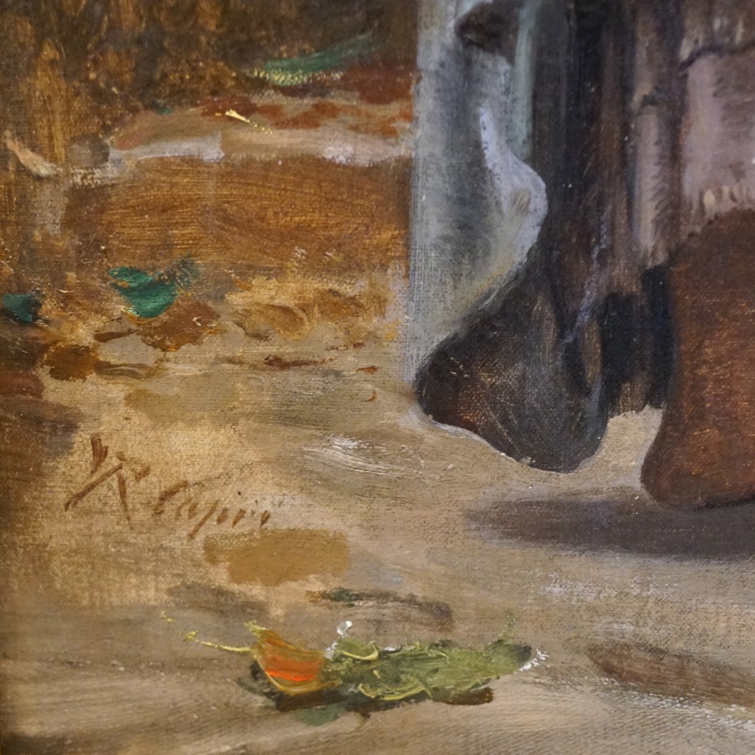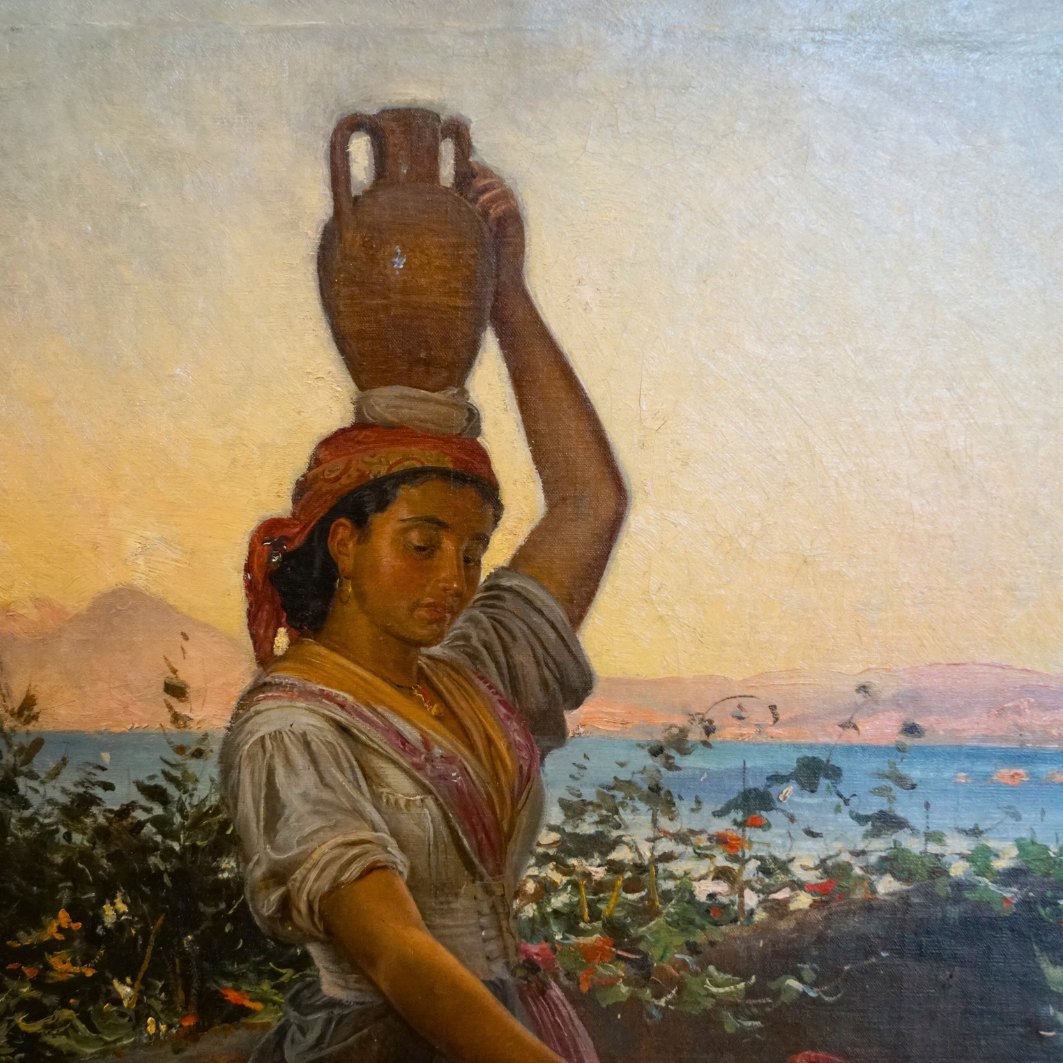 Vilhelm Rosenstand; Oil painting with woman and child, motif from Italy. Oil on canvas. Signed.