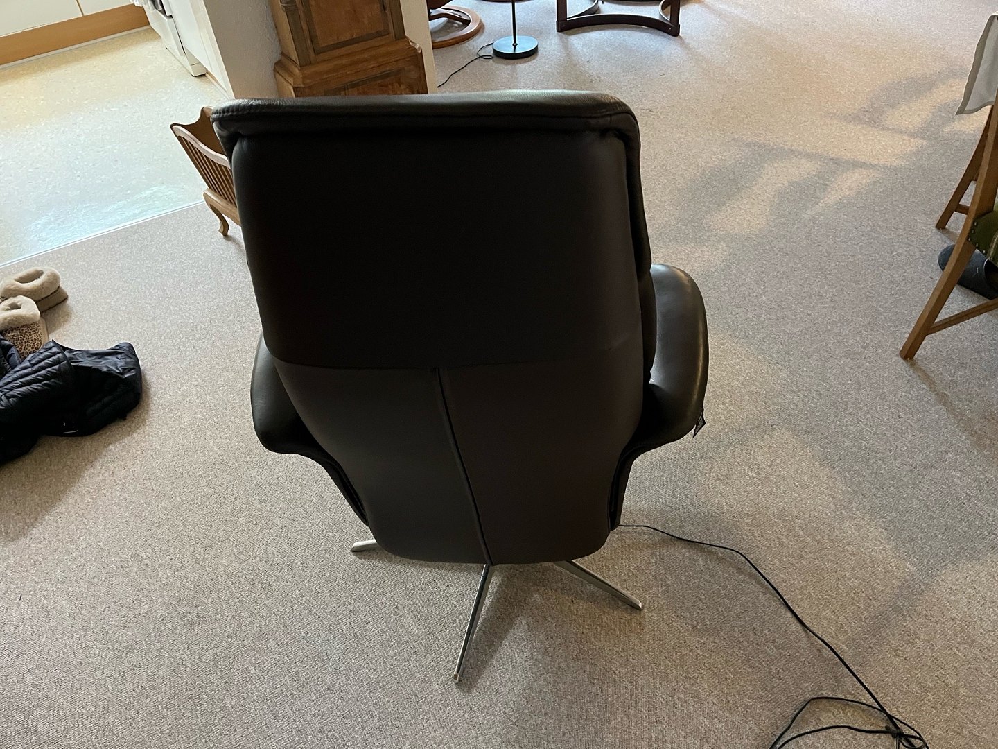 Hjort Knudsen Dundee L�nestol �LargeM/el betjening.Nypris 20.000,-Stolen st�r som ny og brugt meget lidt.Dundee l�nestolen fra Hjort Knudsen er en del af den anerkendte Dundee-serie, der er udviklet med fokus p� komfort og eksklusivt design. L�nestolen er betrukket med semianilinl�der, som kombinerer h�j slidstyrke med et sofistikeret og naturligt udtryk.Modellen er udstyret med en integreret fodskammel, der nemt aktiveres ved at bruge betjeningsknapperne der sidder i arml�nene Rygl�net kan ligeledes justeres til en komfortabel hvilestilling, og den regulerbare nakkest�tte sikrer optimal st�tte og ergonomi.Tilg�ngelige st�rrelserDundee l�nestolen tilbydes i tre st�rrelser: Small, Medium og Large. Dette giver mulighed for at v�lge den variant, der passer perfekt til b�de bruger og indretning.Stolen kan desuden leveres med elektrisk funktion.m�l.H�jde 115 cm.brede 84 cm.dybde 54 cm.Om vores koncept� Opk�b af nyere og kvalitetsbrugte designerm�bler� Professionel reng�ring og behandling� Mulighed for fremvisning efter aftaleVi tilbyder gratis levering i hele Danmark ved k�b p� minimum 10.000 kr.Udforsk ogs� vores �vrige sortiment af designklassikere fra blandt andre:Poul Kj�rholm, Hans J. Wegner, Erik J�rgensen, Mogens Hansen, S�ren Lund, Arne Jacobsen, Bruno Mathsson, J�rgen Gammelgaard, Nielaus, Skalma, Fritz Hansen, Cph, Skovby og BoConcept.Se et bredt udvalg p� vores hjemmeside: Mrretrodesign.dk