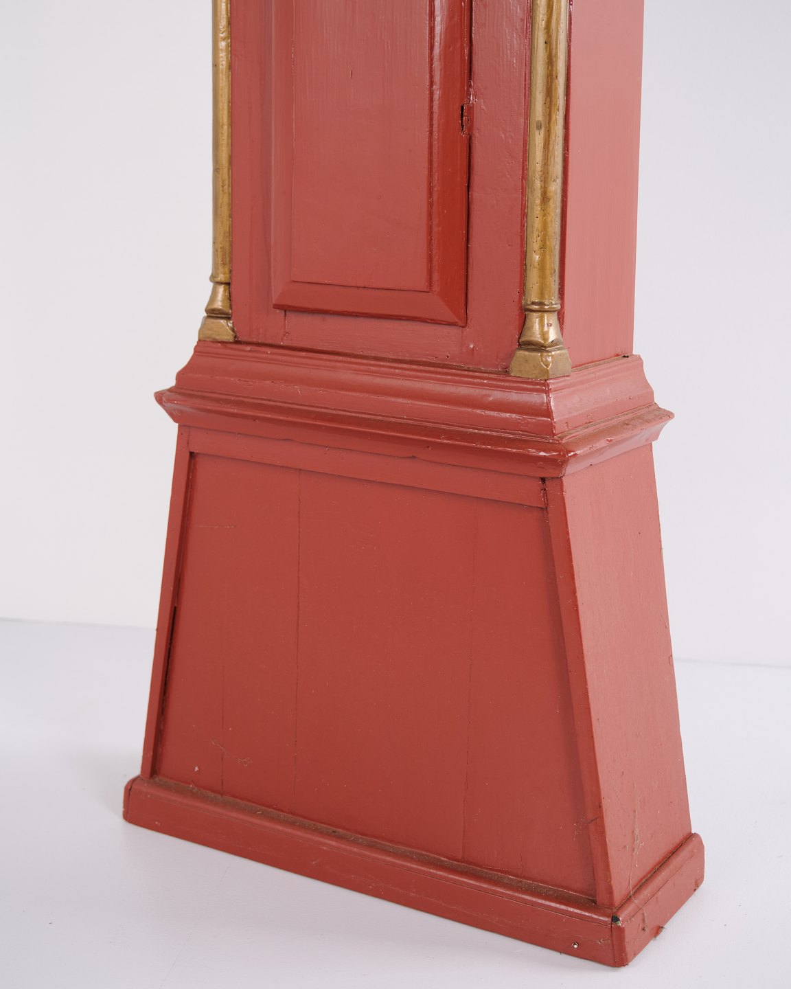 Longcase Clock / Bornholm Clock – Red Painted – Carved Details – c. 1820s