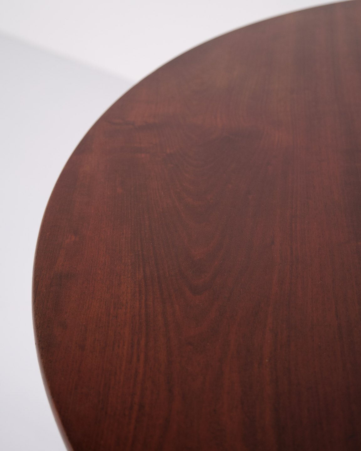 Entrance or lobby table from the 19th century, crafted in mahogany as a classic pedestal table with a round top. A decorative and period-characteristic piece suitable for hallways, lobbies, or living spaces. Solid wood and elegant craftsmanship.