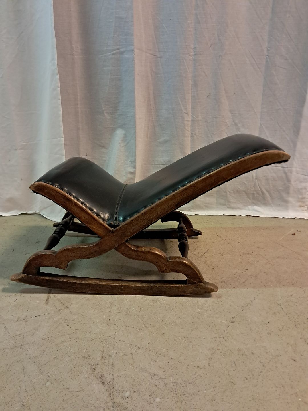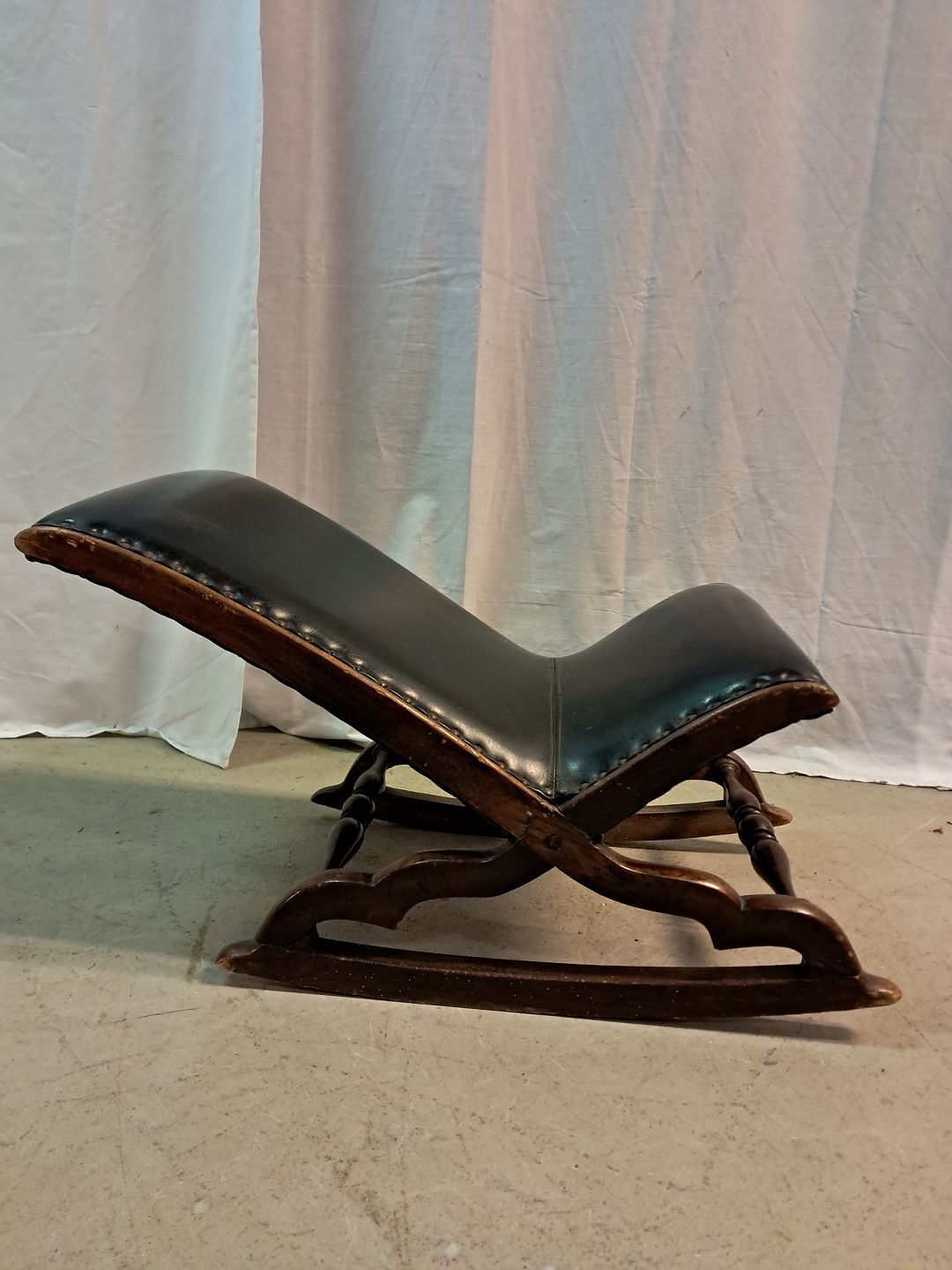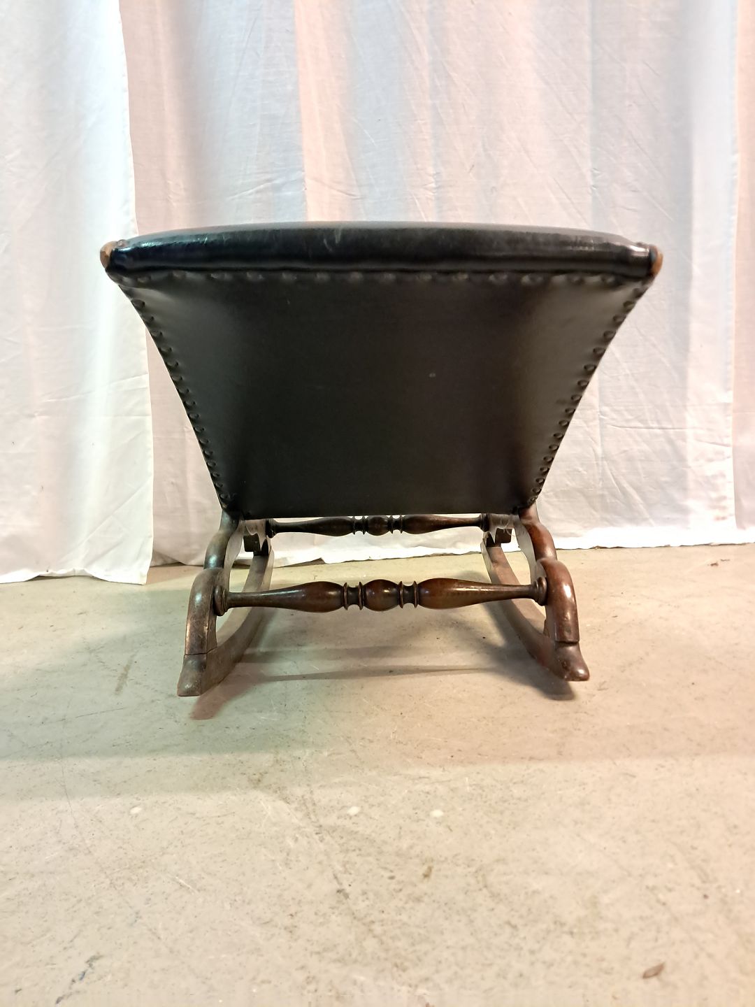 Skammel i bøgetræ og kunstlæder, fra 1920erne.