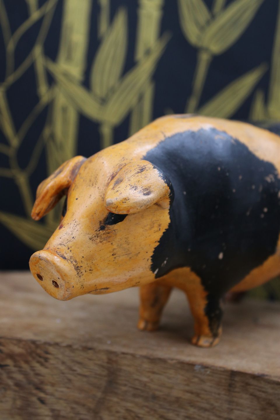 Decorative, 19th century terracotta piggy bank with fine original paint and fine patina. H: 11cm. L: 23cm.