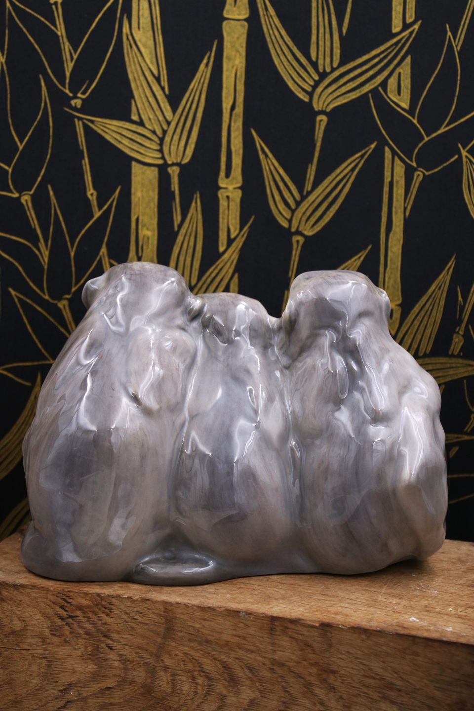 Royal Copenhagen porcelain figurine of 3 monkeys, design by Knud Kyhn. Decoration number: 1454/940. 2.sort. from 1923-28.
