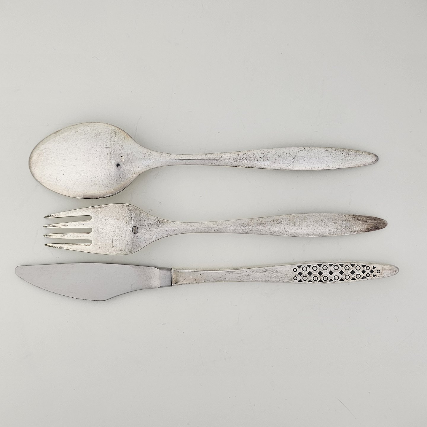 Text available in Danish: Bestik i pletsølv fra serien Venedig